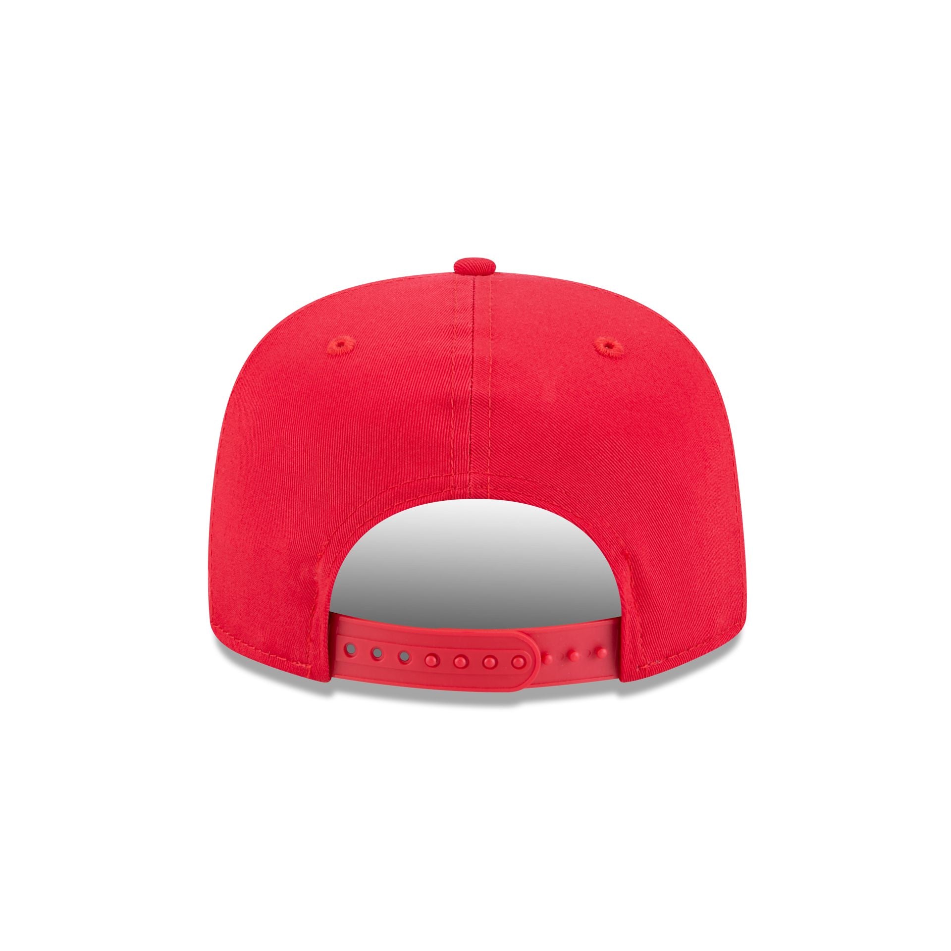 The Atlanta Hawks Team Text Golfer features an embroidered Hawks script at the front panels with a team logo at the right-wear side and a snapback closure at the rear.