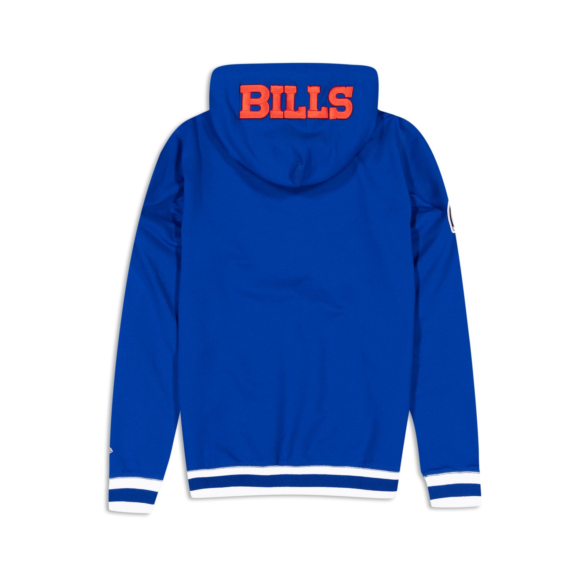 The Buffalo Bills Logo Select Hoodie features a chenille applique Bills logo at the left chest with team patches at each sleeve and an embroidered team wordmark at the rear.