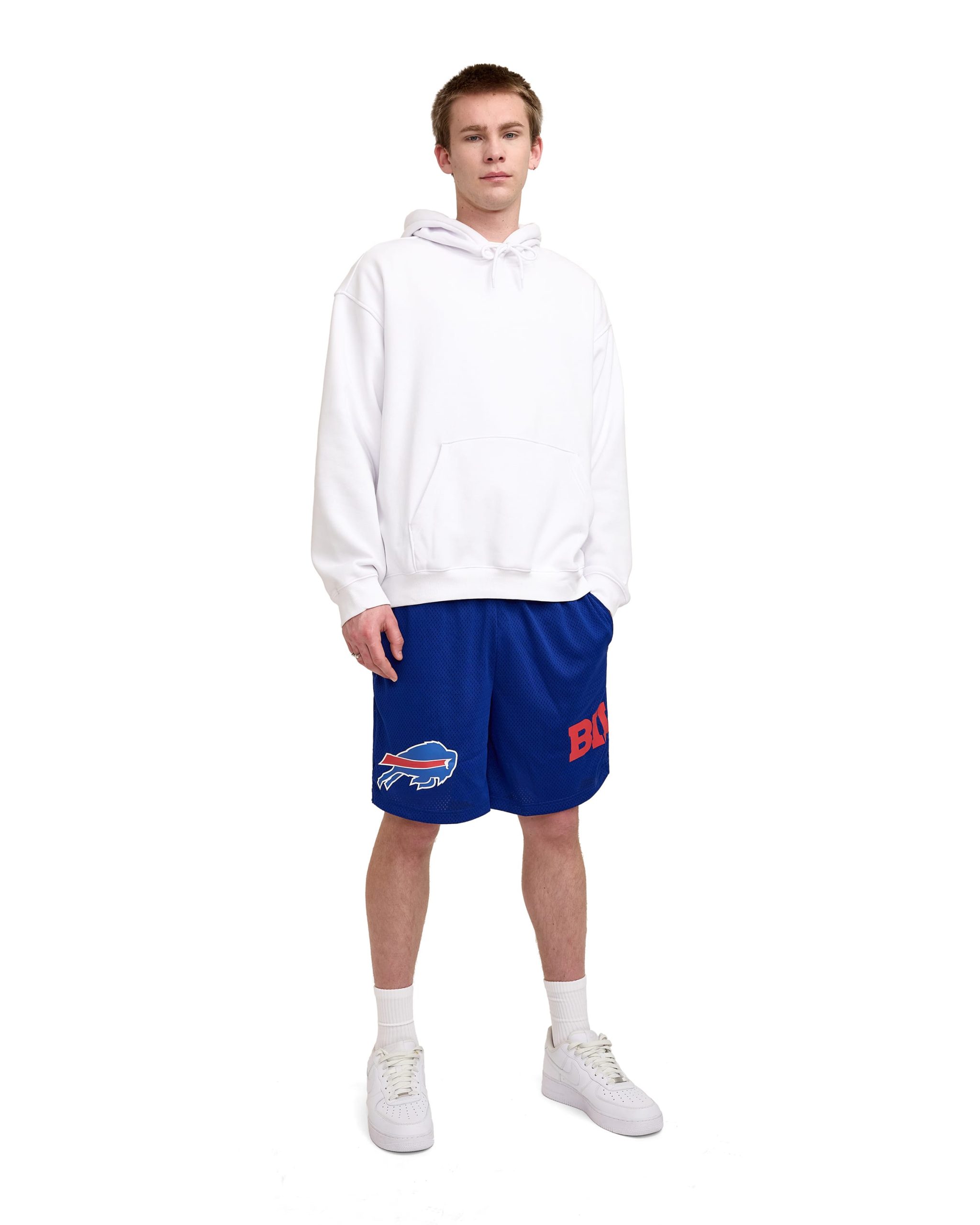 The Buffalo Bills Summer Shorts feature a screen-printed Bills logo at the right leg and team wordmark on the left.