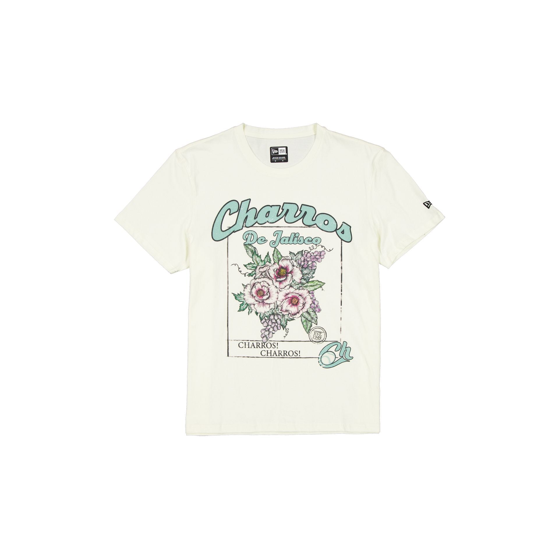 The Charros de Jalisco Stone Floral T-Shirt features a screen-printed Charros floral graphic at the front.