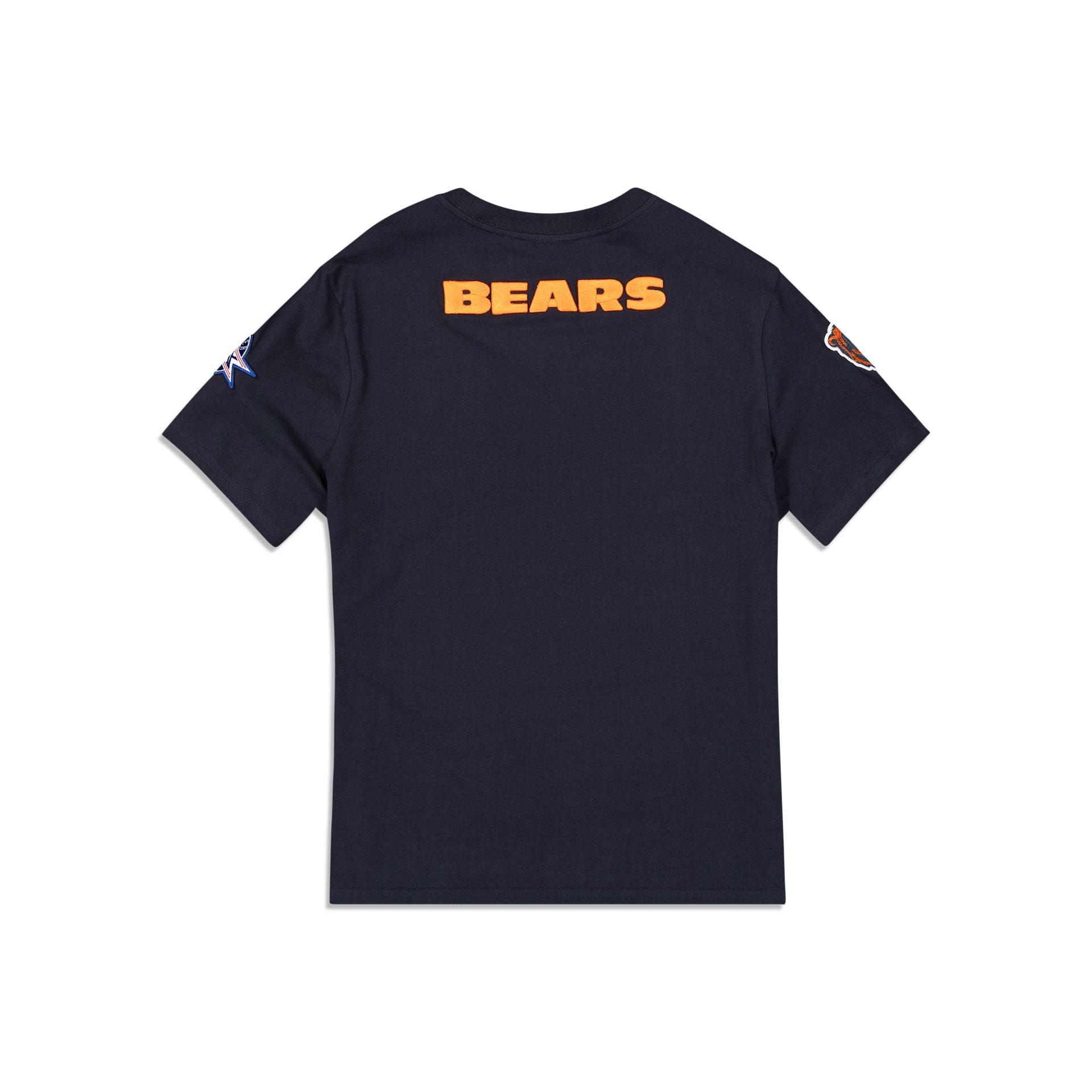 The Chicago Bears Logo Select T-Shirt features a chenille applique Bears logo at the left chest with team patches at each sleeve and an embroidered team wordmark at the rear.