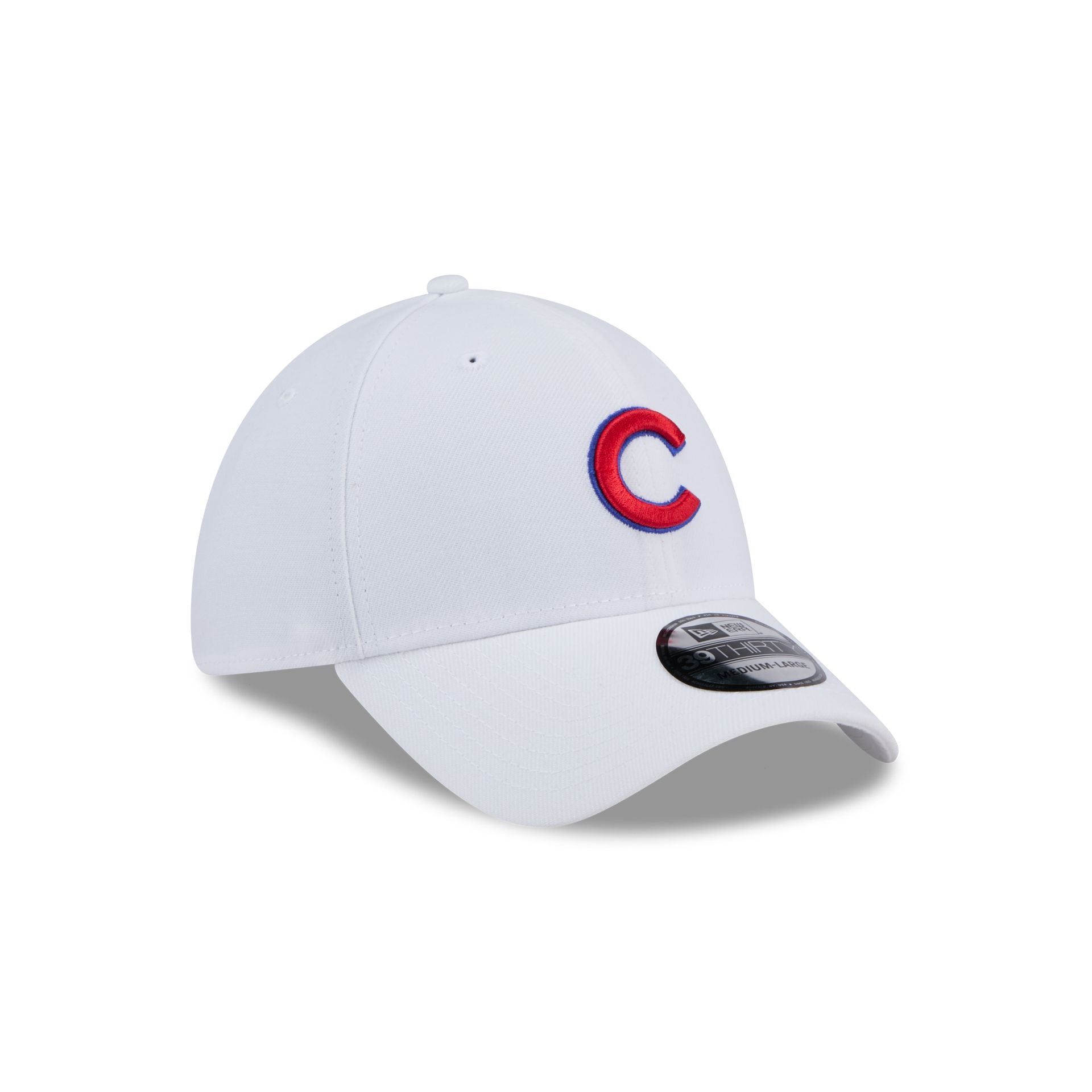 The Chicago Cubs Optic White 39THIRTY Stretch Fit Hat features an embroidered Cubs logo at the front panels with a matching team wordmark at the rear and a white undervisor.