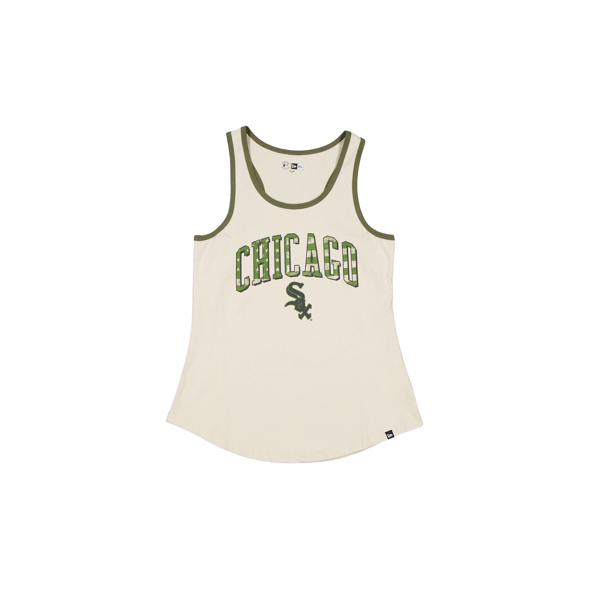 The Chicago White Sox Armed Forces Day 2025 Women’s Stone Tank Top features a screen-printed White Sox logo and wordmark at the front.