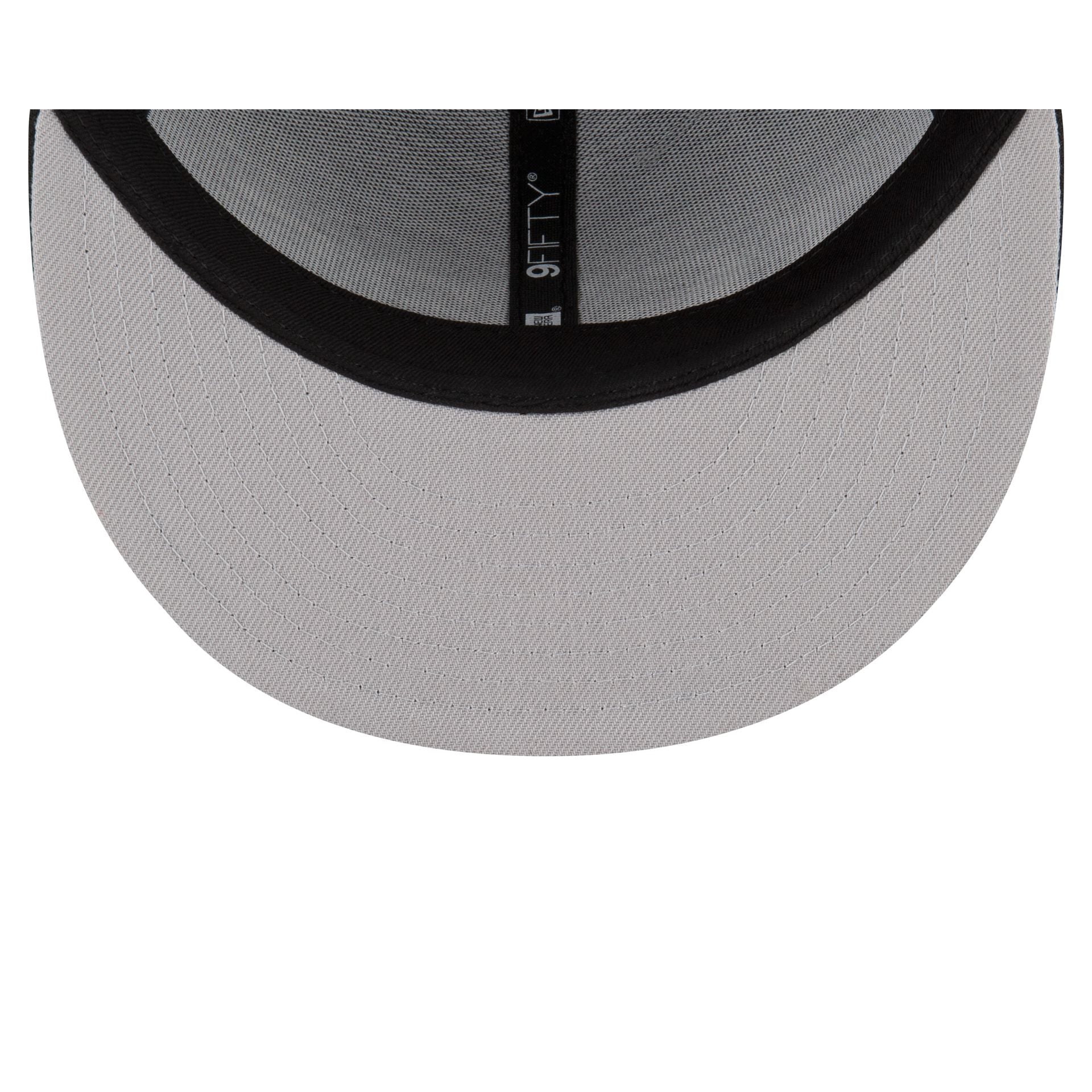 The Dallas Wings Rebel Series 9FIFTY Snapback features an embroidered Wings wordmark at the front panels with a team logo at the right-wear side. an adjustable snapback closure at the rear. and a gray undervisor.