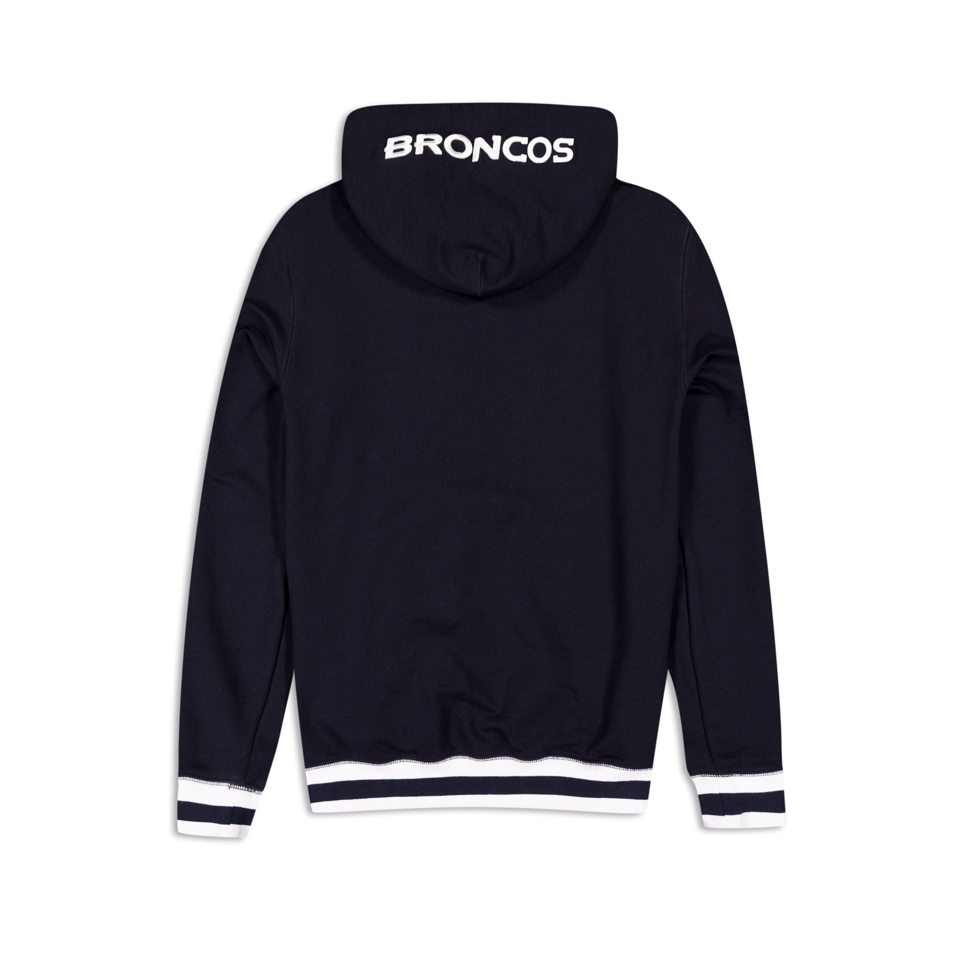 The Denver Broncos Logo Select Hoodie features a chenille applique Broncos logo at the left chest with team patches at each sleeve and an embroidered team wordmark at the rear.