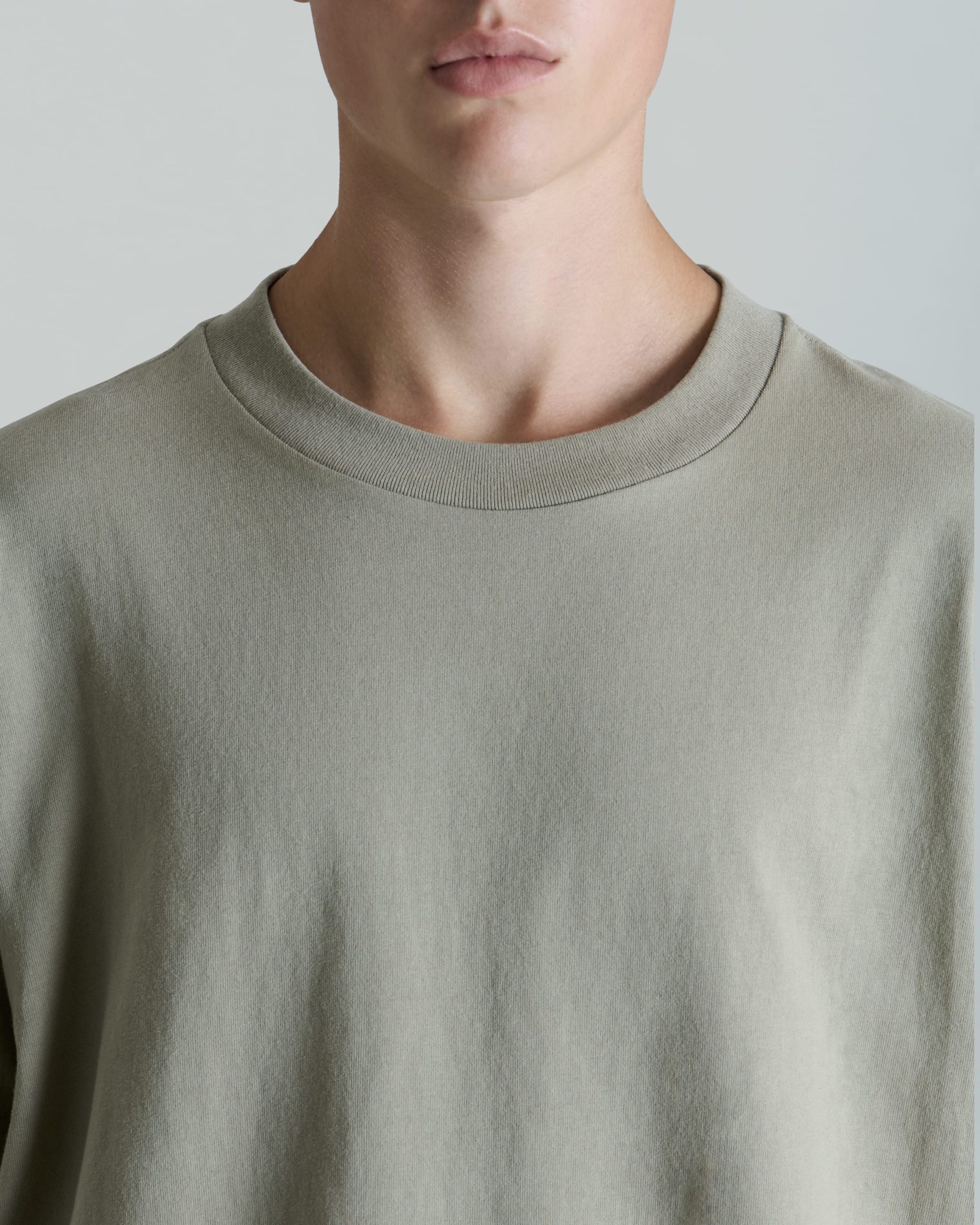 Featuring our specially developed 100% recycled. mid weight. 235 GSM rotor spun Cotton jersey. the Erhardt T-Shirt features: