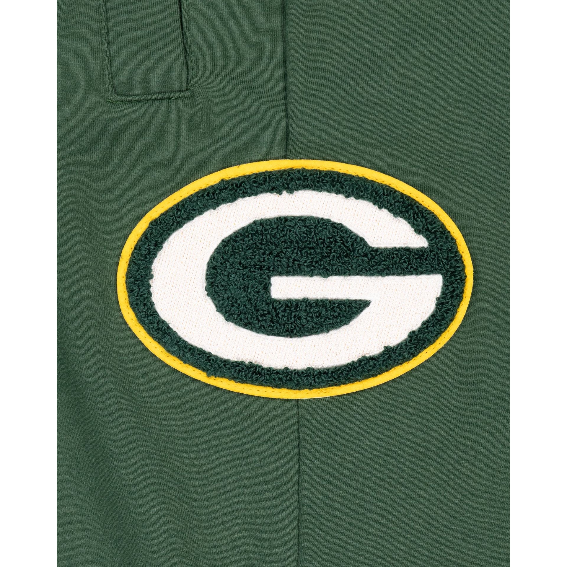 The Green Bay Packers Logo Select Jogger features a chenille applique Packers logo and embroidered wordmark at the left leg with an alternate team logo at the right ankle.