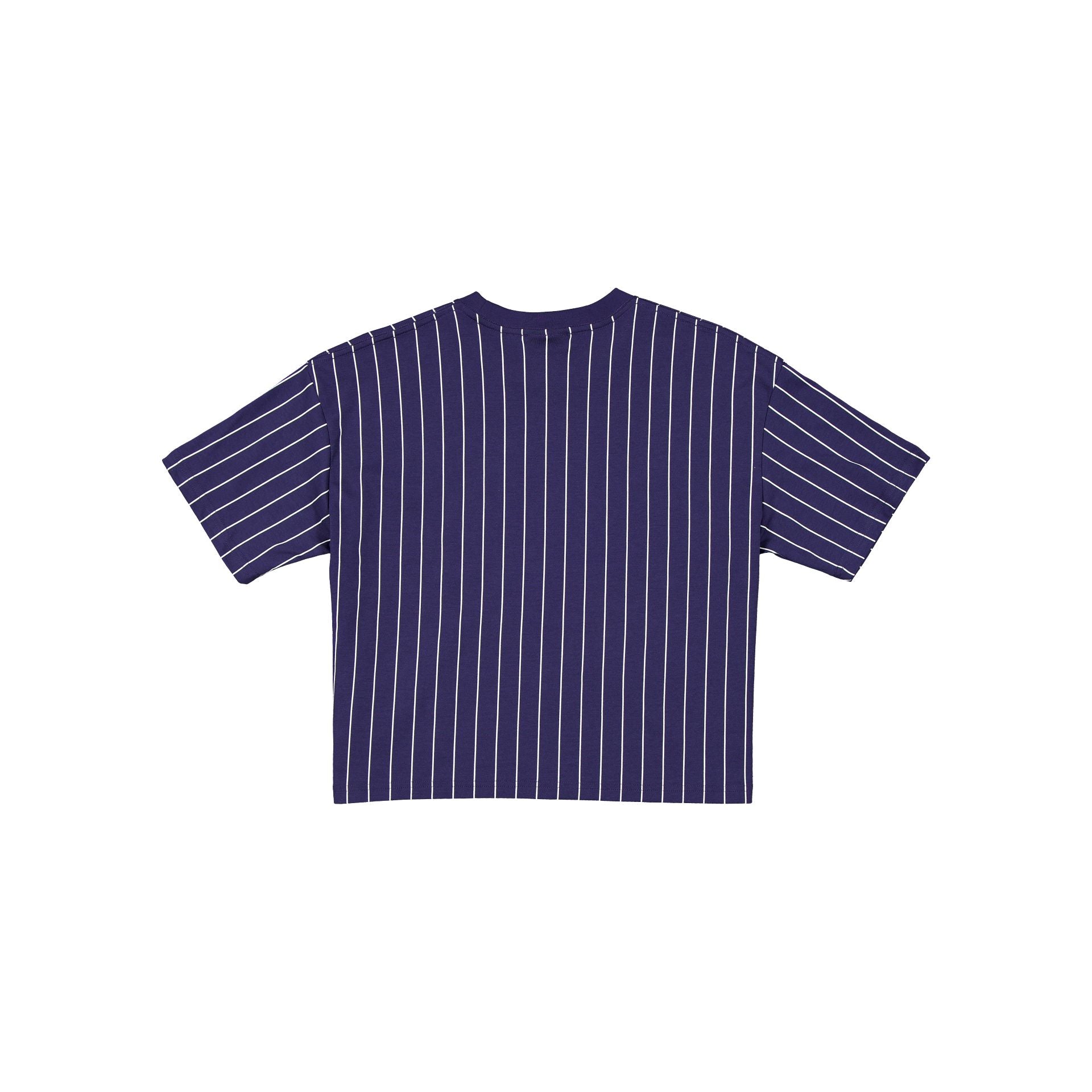 The Houston Astros City Connect Women’s Pinstripe T-Shirt features a screen-printed Astros wordmark and logo at the front with a New Era jock tag at the left hip.