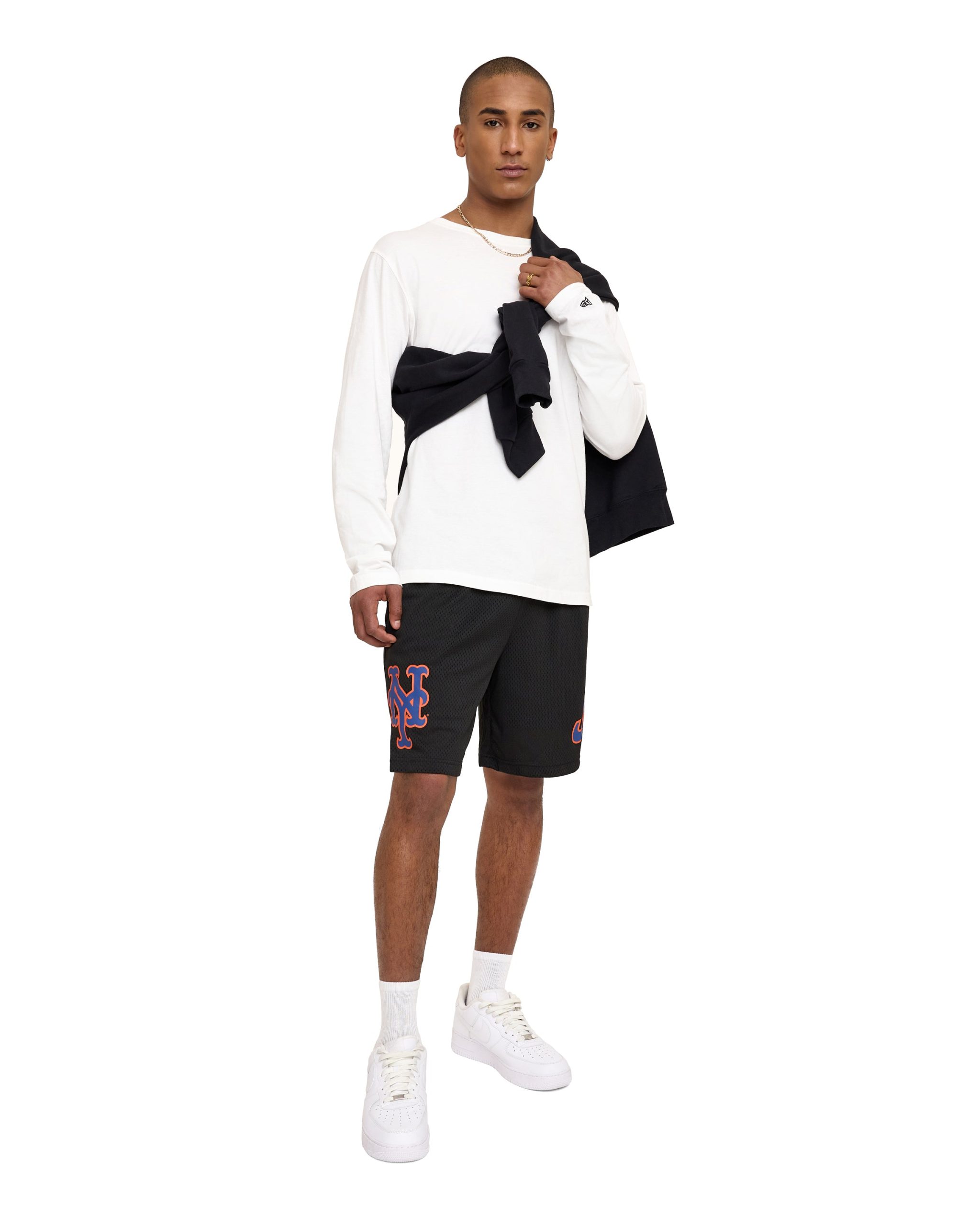 The Los Angeles Dodgers Mesh Shorts features a screen-printed Dodgers logo at the left leg with a team wordmark at the right leg.