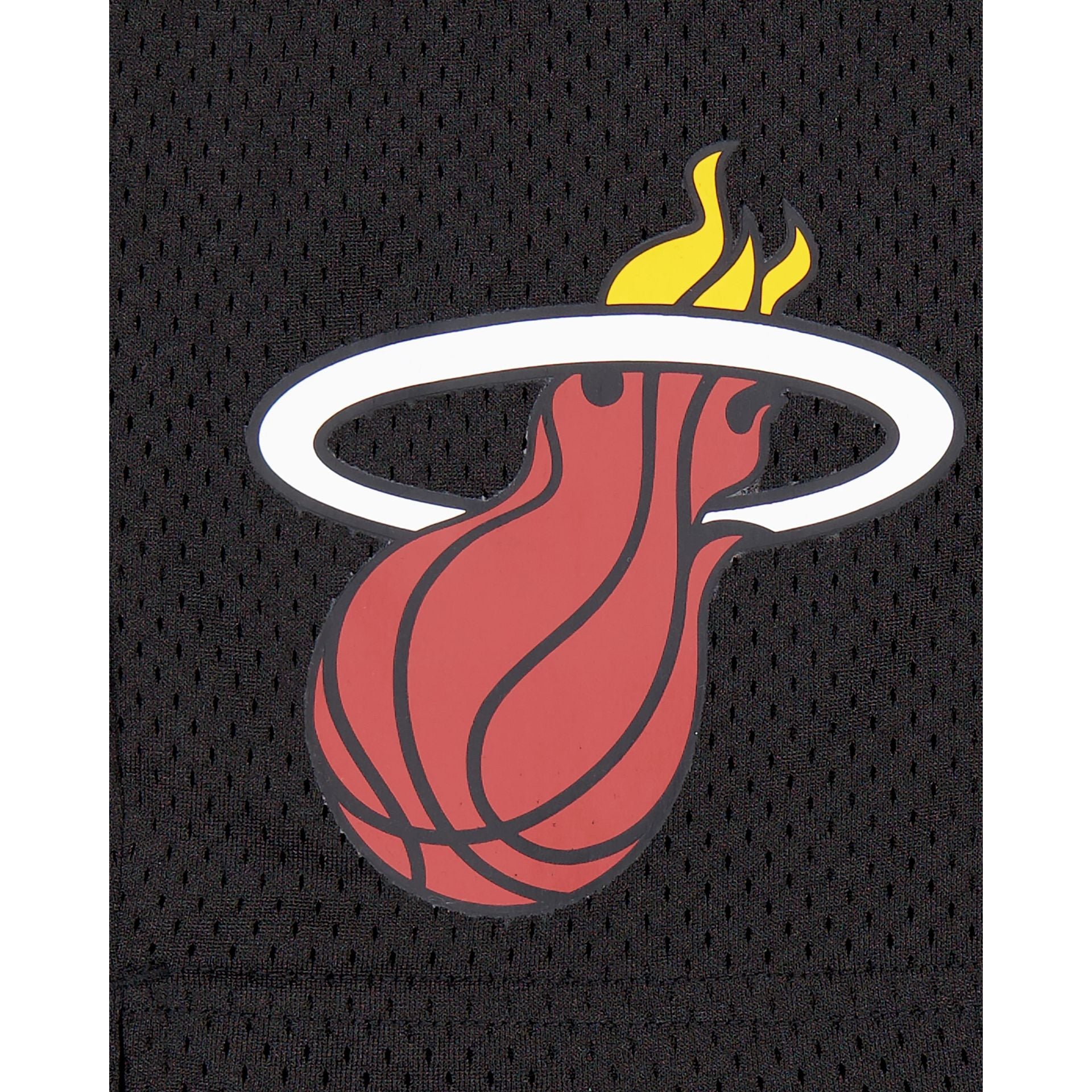 The Miami Heat Mesh Shorts features a screen-printed Heat logo at the left leg with a team wordmark at the right leg.