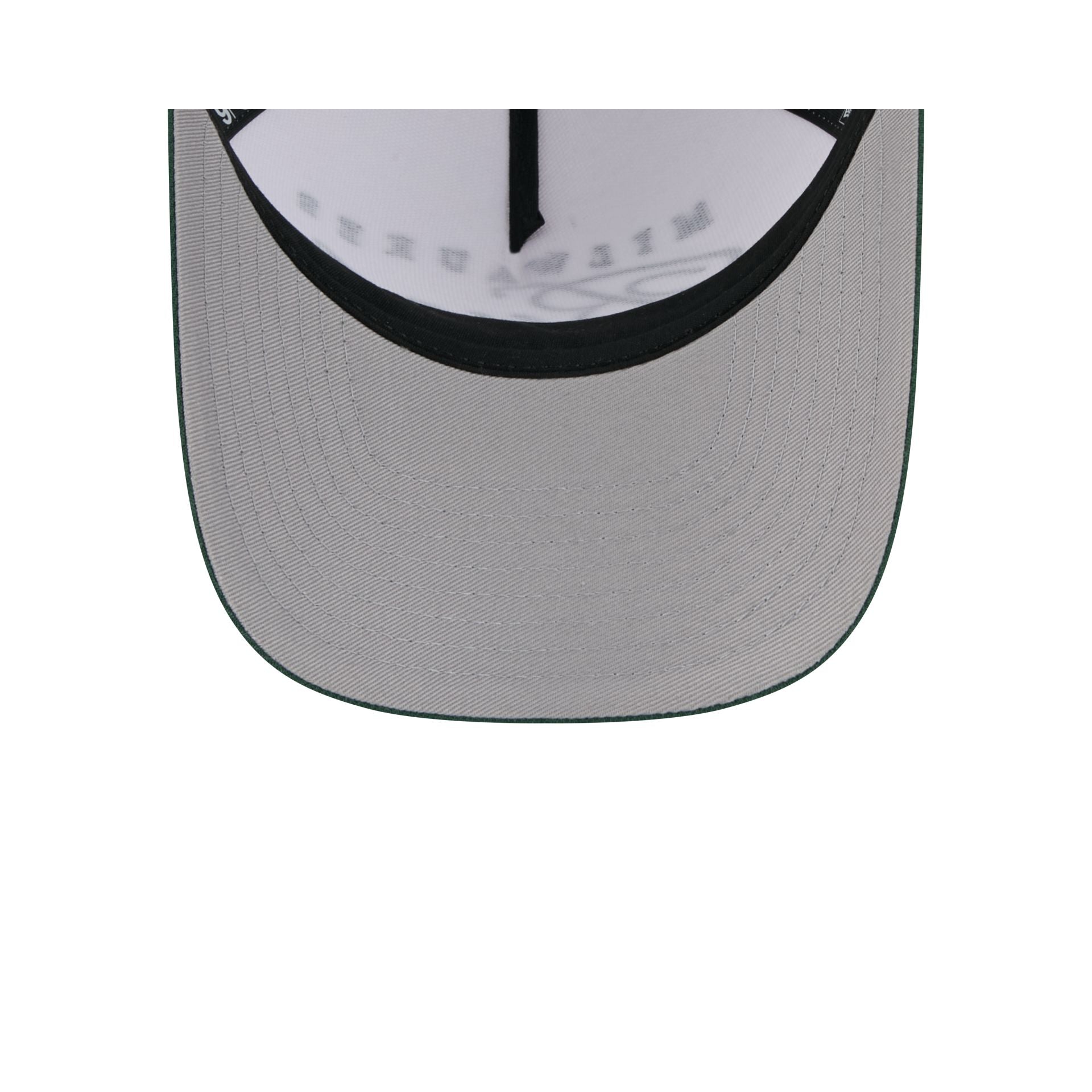 The Milwaukee Bucks 2025 Draft 9FORTY M-Crown A-Frame Snapback features an embroidered Bucks script wordmark at the front panels with a team logo at the right-wear side. Additional details include a woven silicone NBA Logoman patch above an adjustable snapback closure at the rear and a gray undervisor.