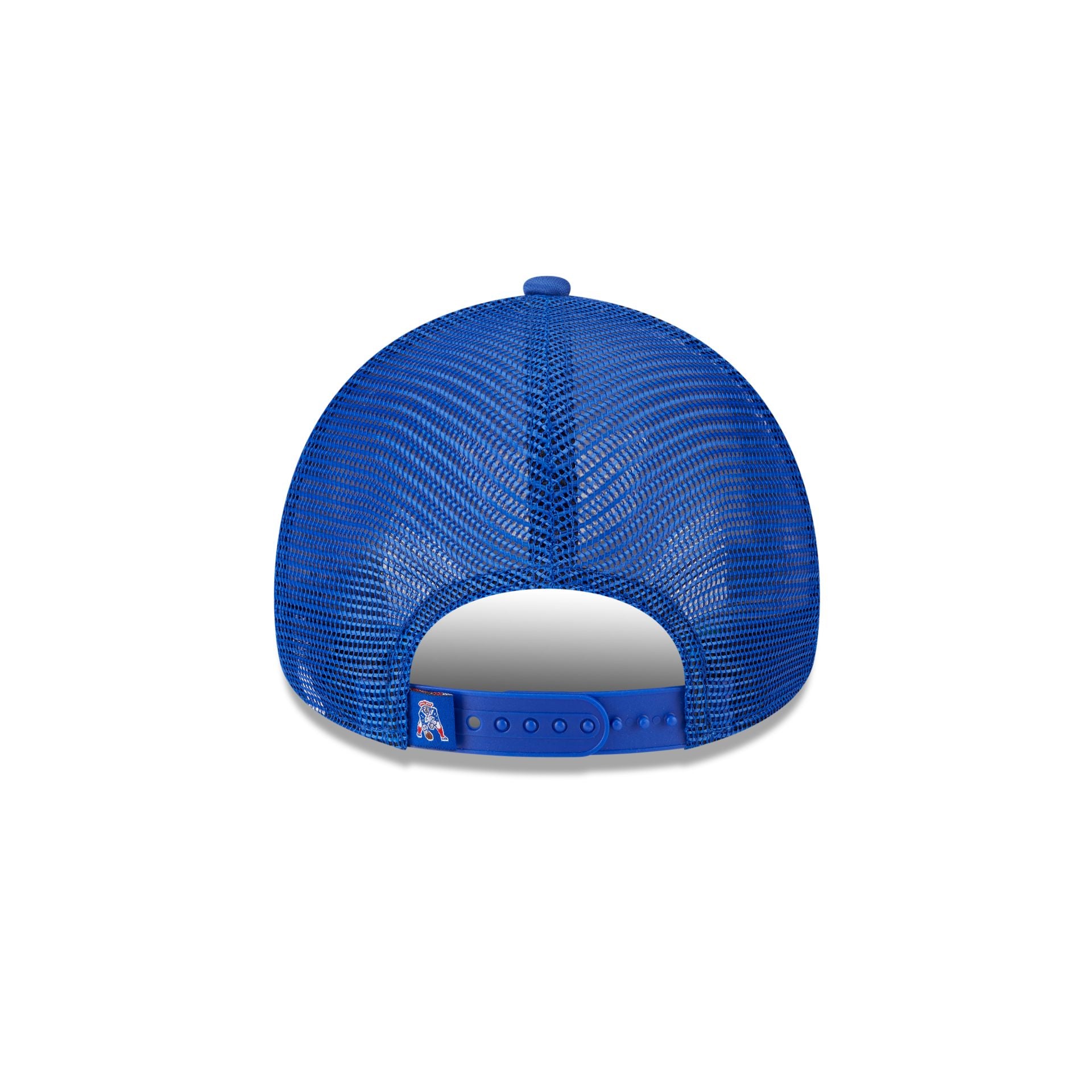 The New England Patriots Distressed 9FORTY A-Frame Trucker features a distressed screen-printed Patriots Historic wordmark and logo at the front panels with a team tag at a snapback closure at the rear and a green undervisor.