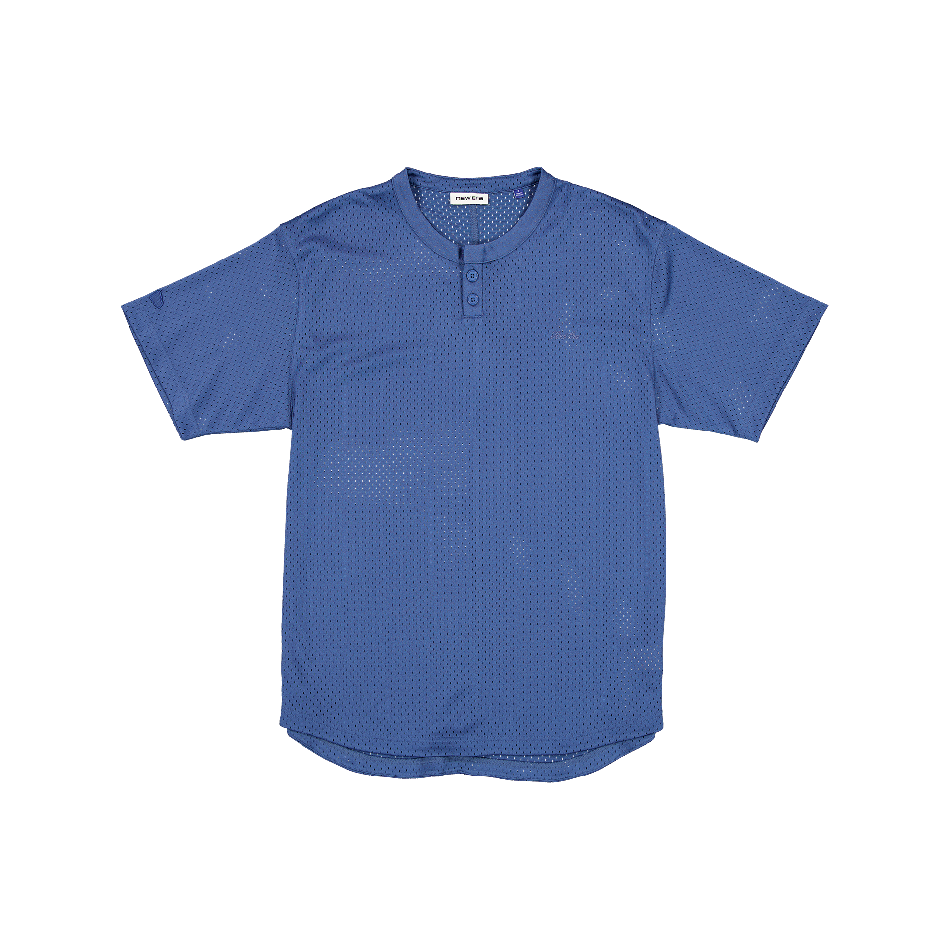 New Era Branded Galvin 2-Button Mesh Henley Indigo Jersey