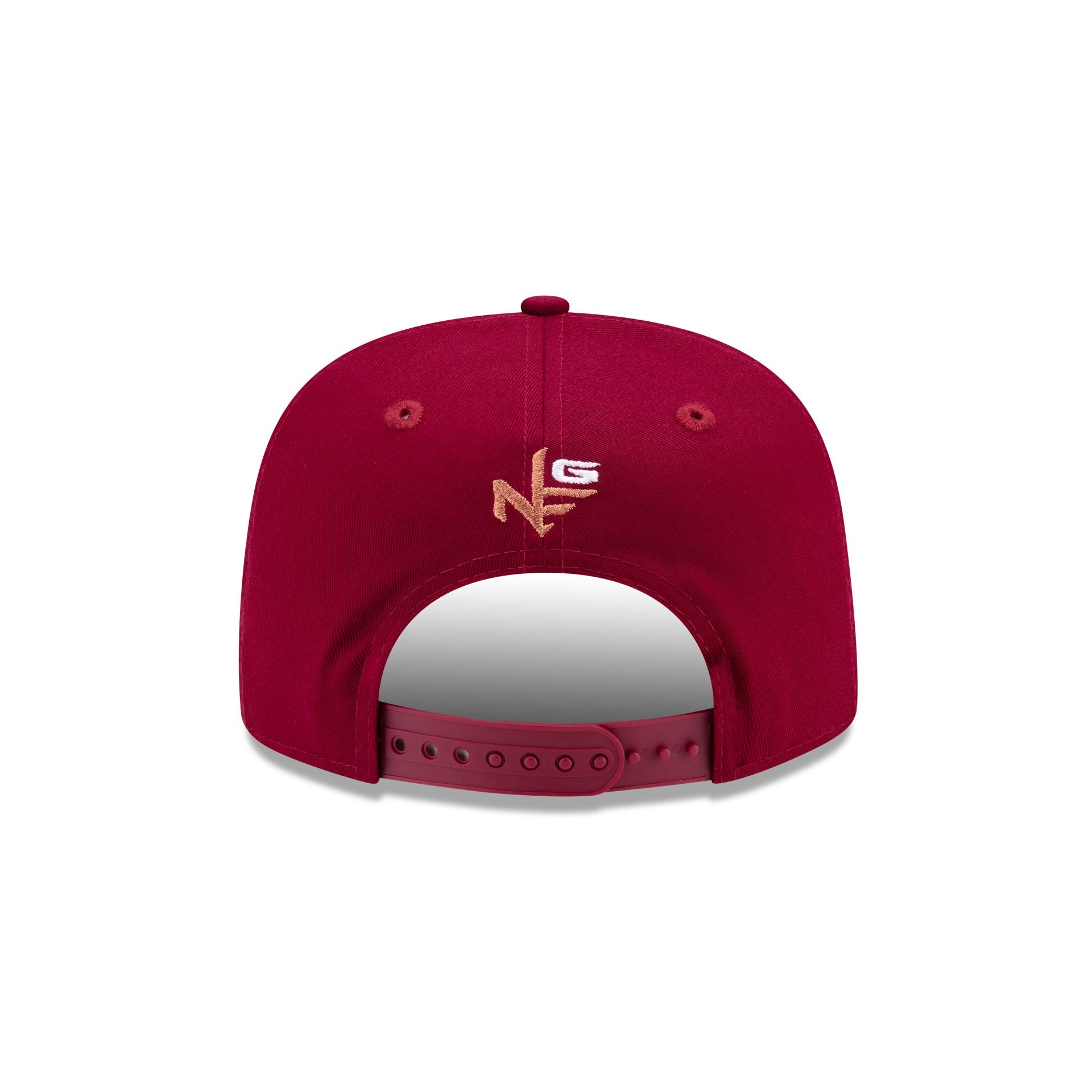 The New Era Golf Fringe Golfer features an embroidered Fringe wordmark at the front panels with a New Era Golf logo above a snapback closure at the rear and a brown undervisor.
