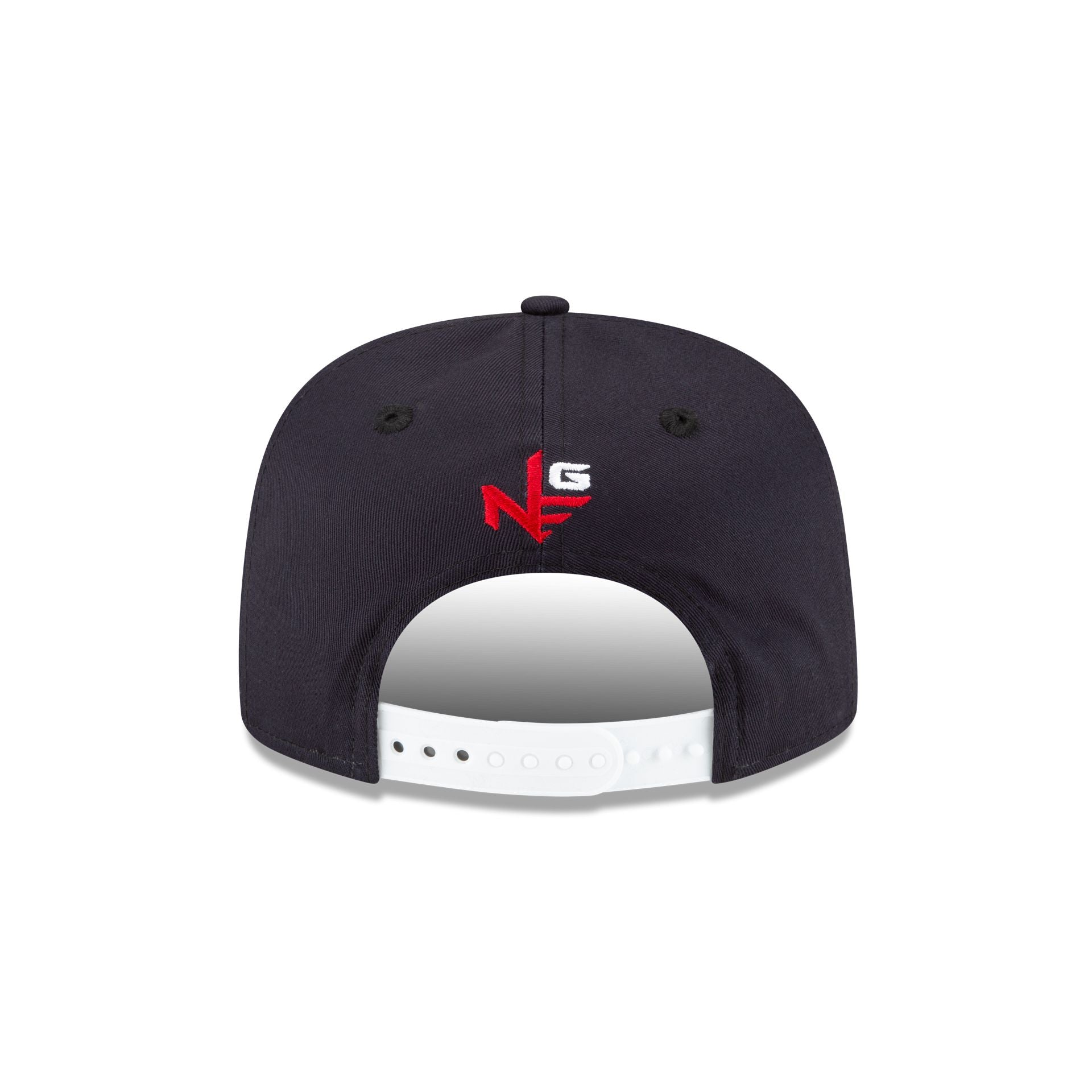 The New Era Golf Navy Golfer features an embroidered golf text at the front panels with a New Era Golf logo above a snapback closure at the rear and a gray undervisor.