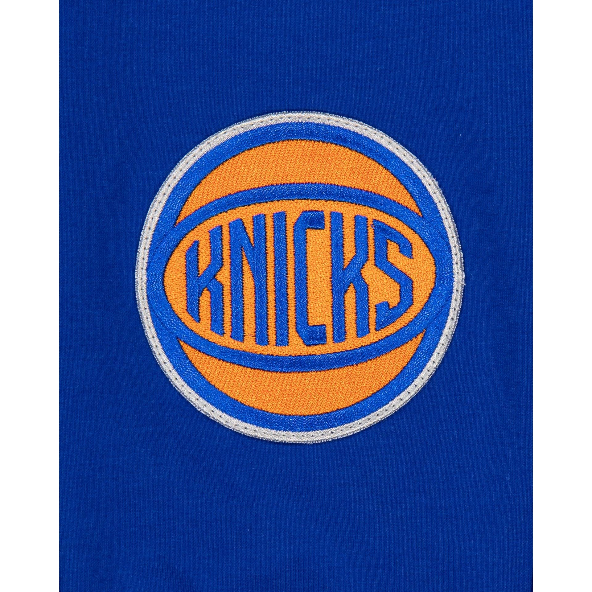The New York Knicks Logo Select Jogger features a chenille applique Knicks logo and embroidered wordmark at the left leg with an alternate team logo at the right ankle.