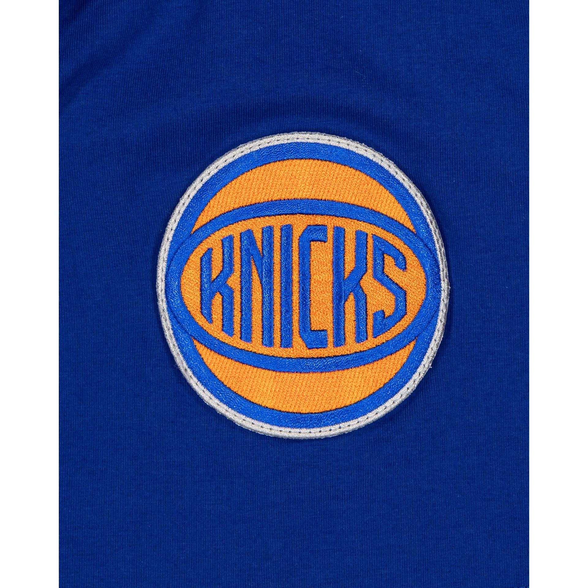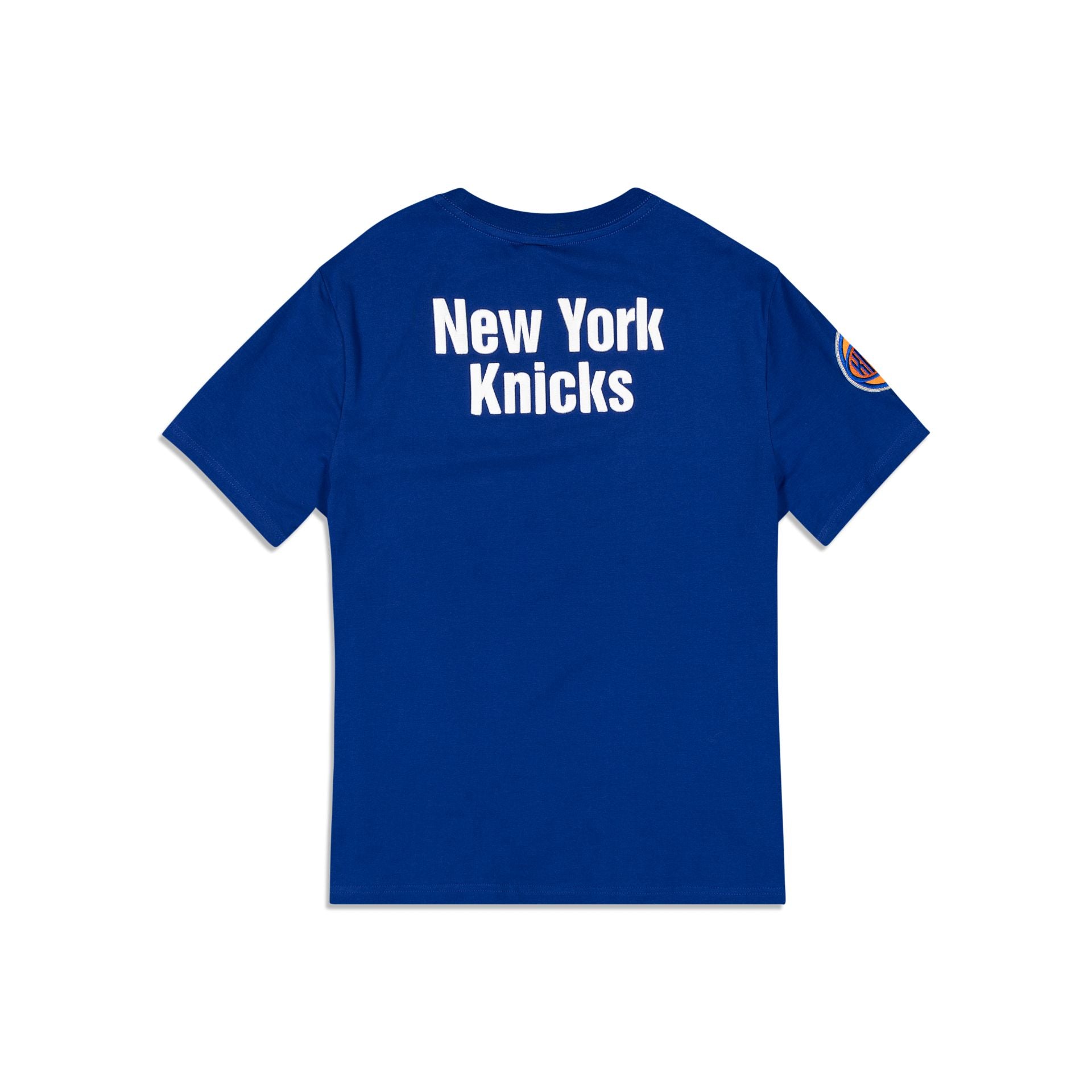 The New York Knicks Logo Select T-Shirt features a chenille applique Knicks logo at the left chest with team patches at each sleeve and an embroidered team wordmark at the rear.