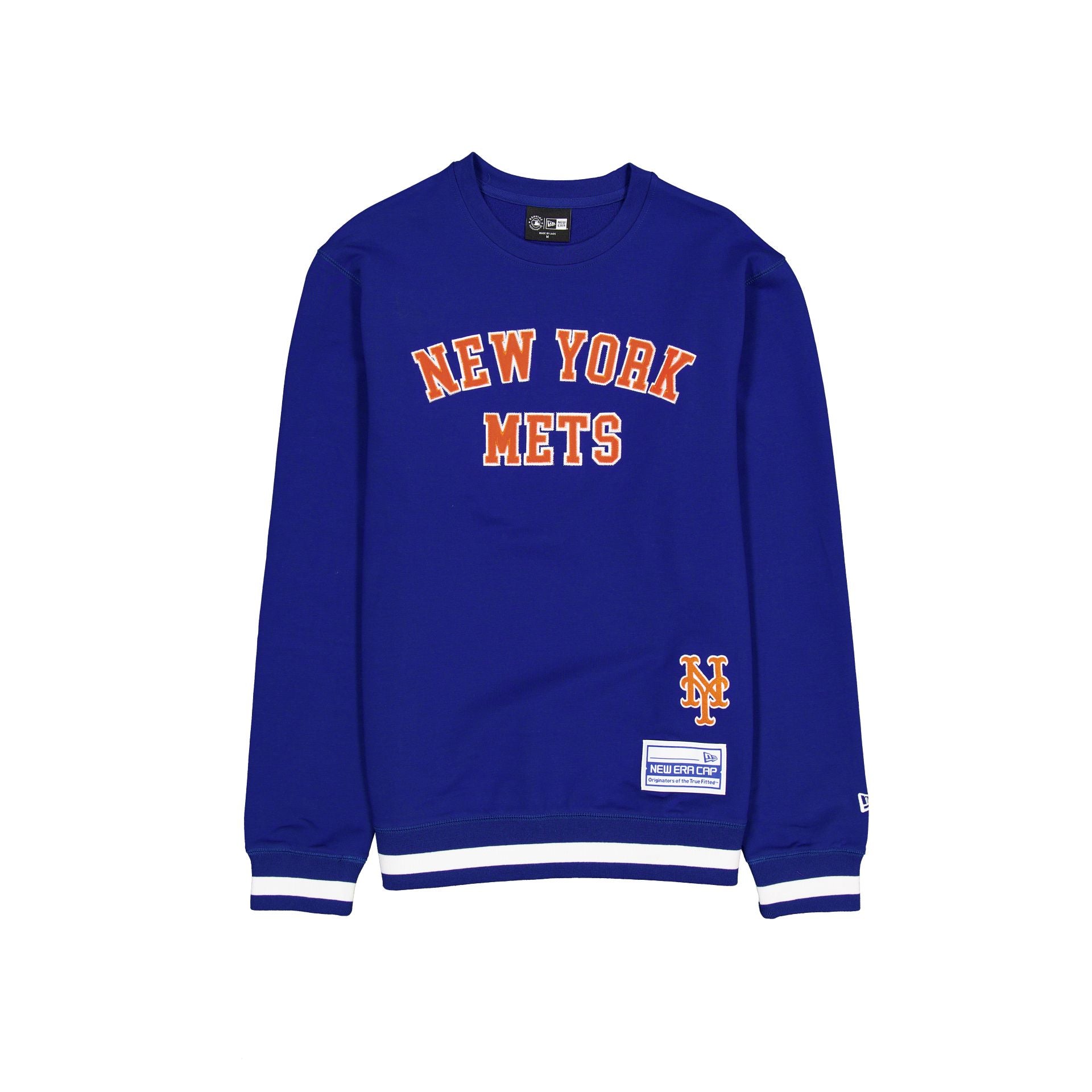 The New York Mets Team Color Logo Select Crewneck features a zig zag stitched twill applique Mets wordmark at the chest with an embroidered team logo above a New Era Cap jock tag at the left hip.