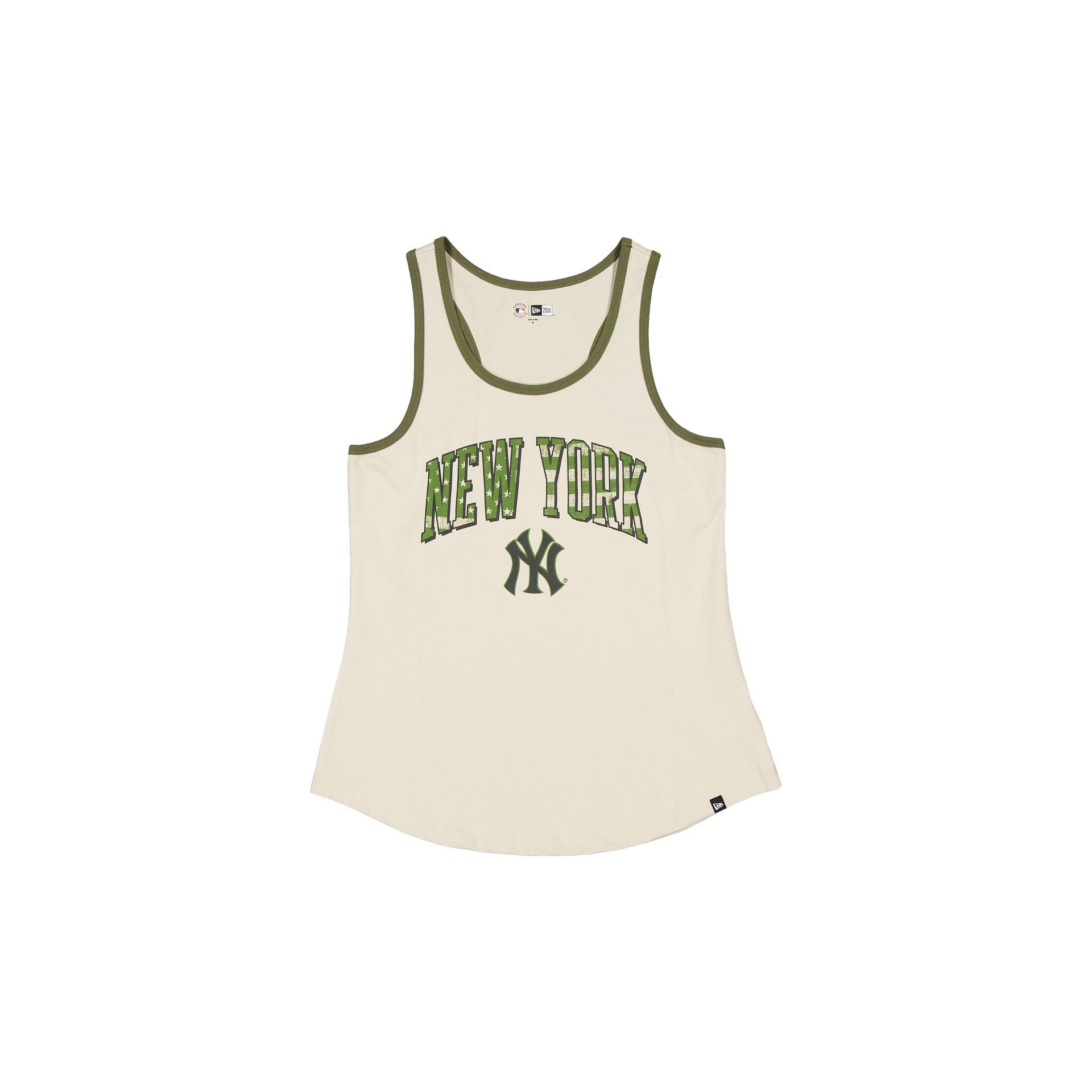 The New York Yankees Armed Forces Day 2025 Women’s Stone Tank Top features a screen-printed Yankees logo and wordmark at the front.