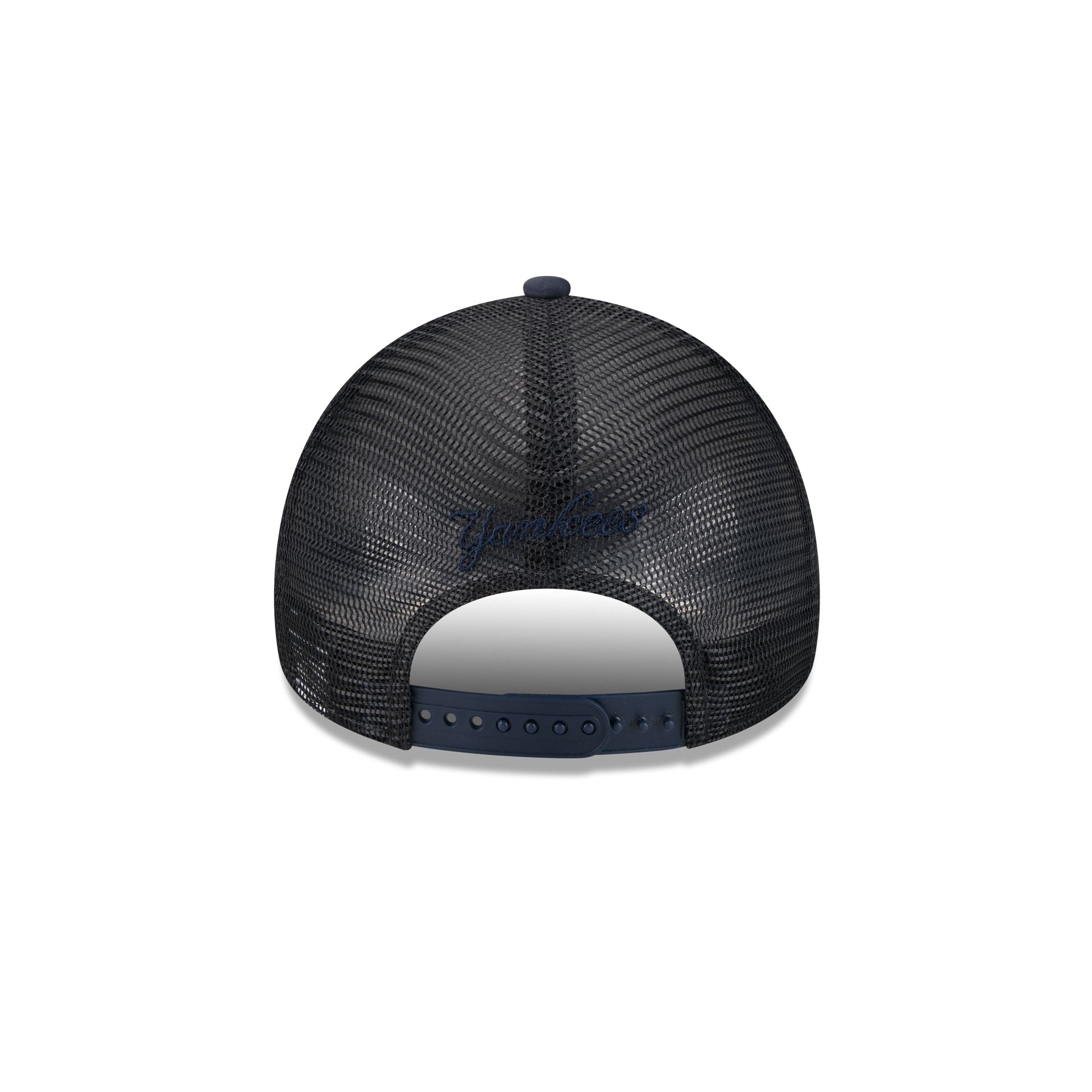 The New York Yankees State Flower 9FORTY A-Frame Trucker features a puff print Yankees wordmark at the front panels against an embroidered state design with a team logo at the right-wear side. Additional details include a snapback closure at a mesh rear and a gray undervisor.