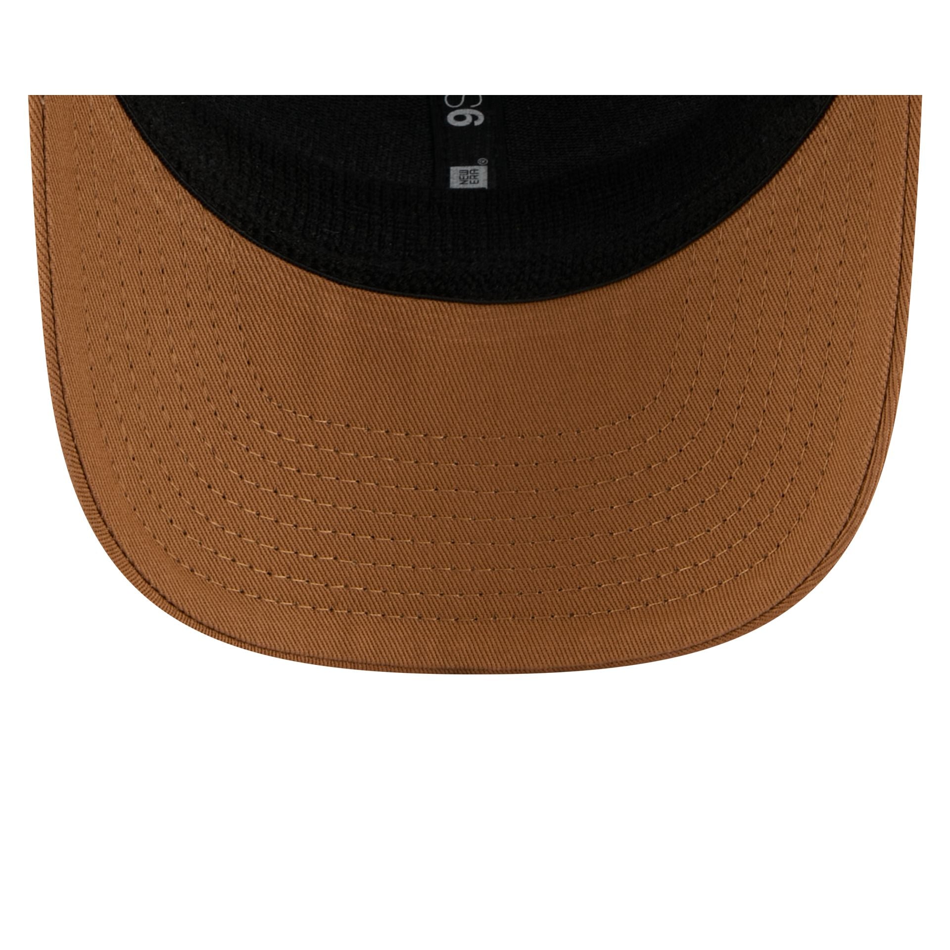 The Pittsburgh Steelers Bronze 9SEVENTY Trucker features an embroidered Steelers Historic logo at the front panels with a matching woven team tag at a snapback closure at the rear.