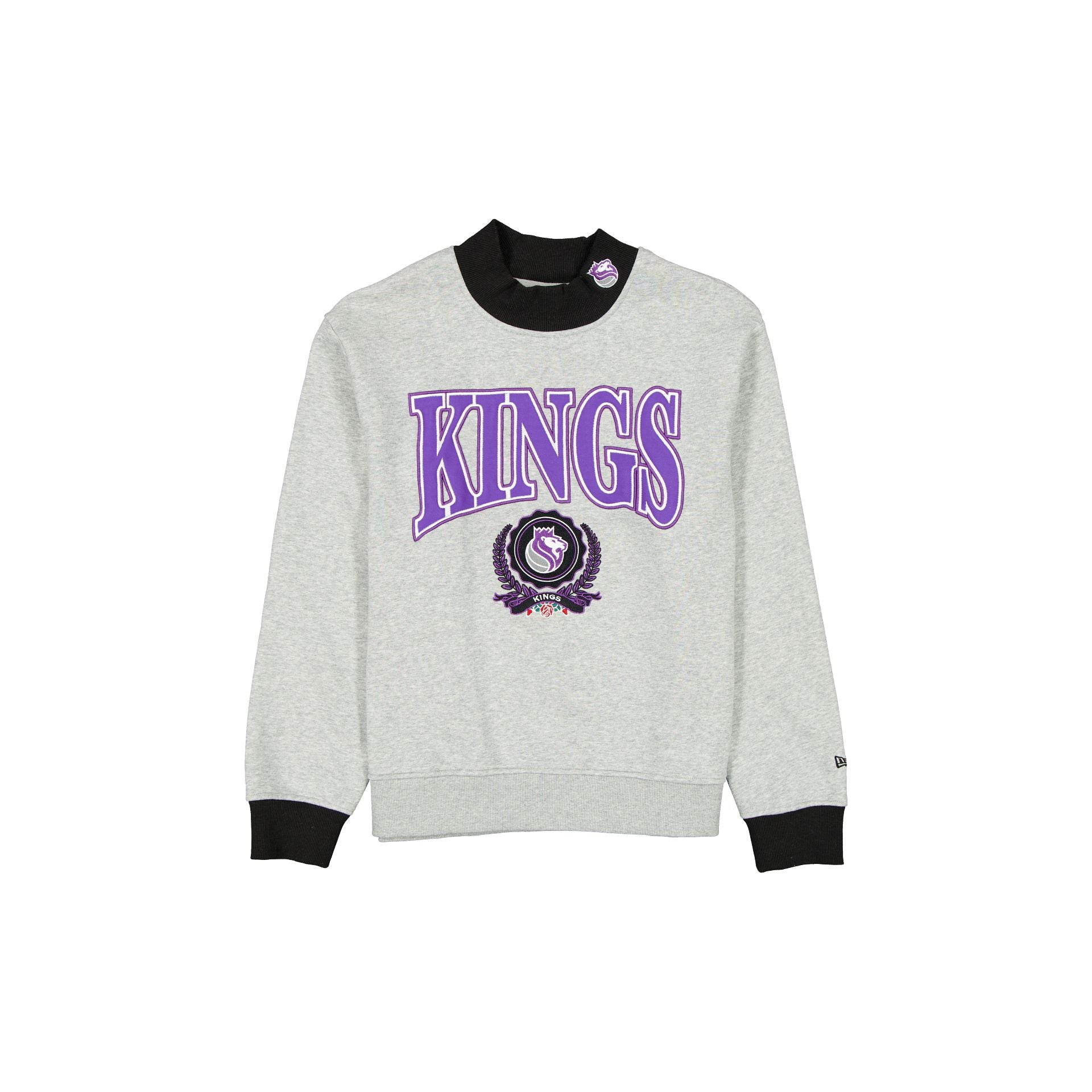 The Sacramento Kings Throwback Prep Women’s Mockneck Sweatshirt features an embroidered Kings wordmark above a team emblem at the front with a matching logo at the neckline.