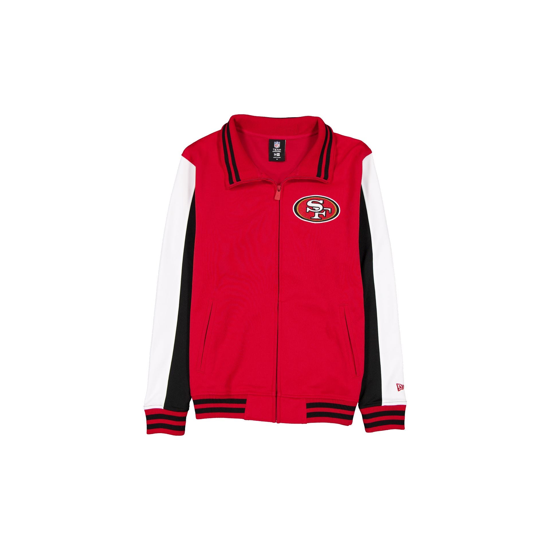 The San Francisco 49ers Game Day Jacket features an embroidered 49ers logo at the left chest and graphic at the back. Additional details include pockets and a zipper closure.