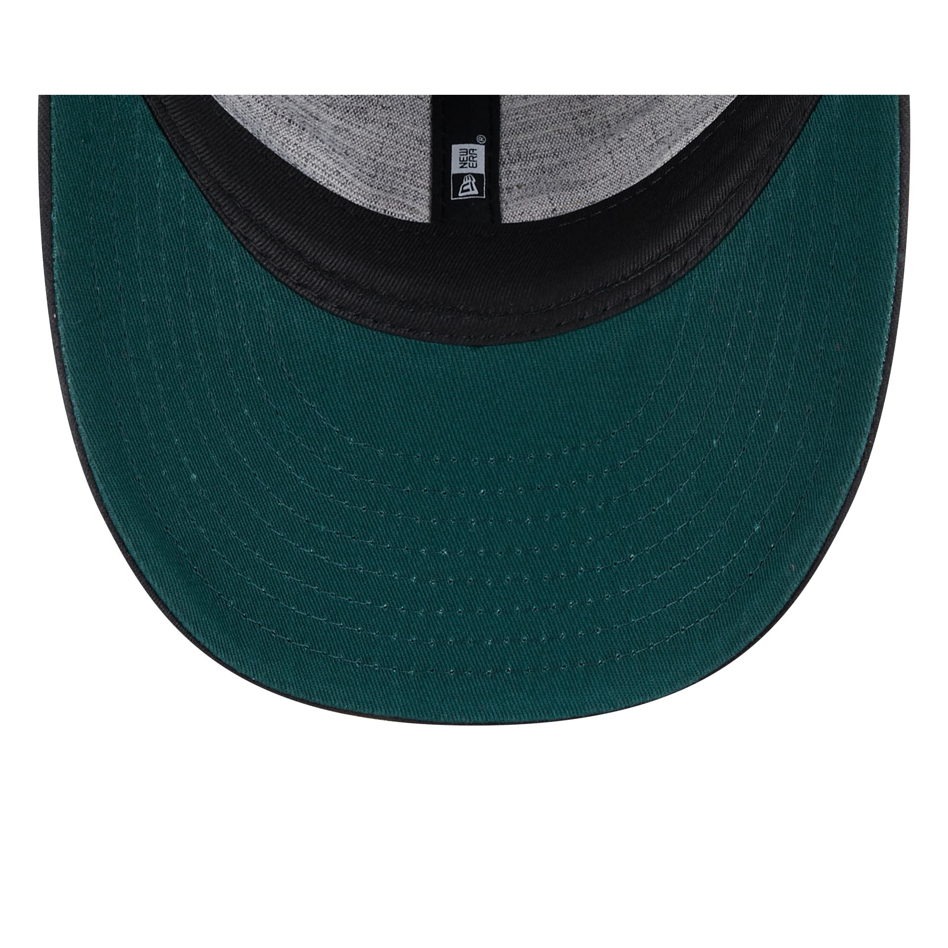 The San Francisco Giants Canvas Felt Retro Crown 9FIFTY Strapback Cap features an embroidered Giants logo at the front panels with a matching MLB Batterman logo at the right rear. Additional details include an adjustable D-Ring closure at the rear and a green undervisor.