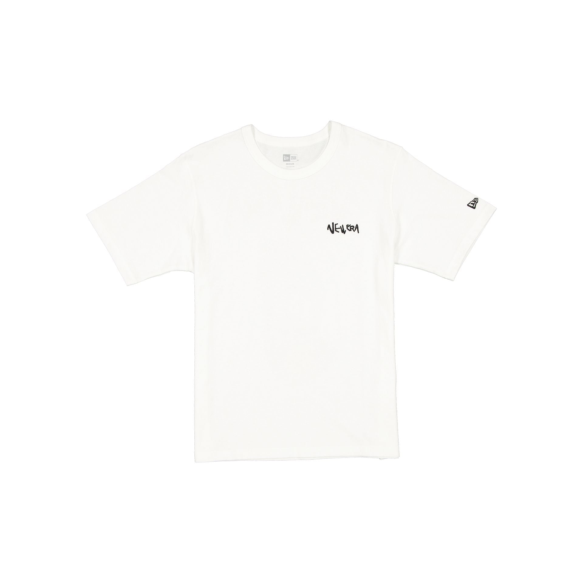 The Shohei Ochiai x New Era White T-Shirt features a screen-printed New Era wordmark at the left chest and cap graphic at the rear.