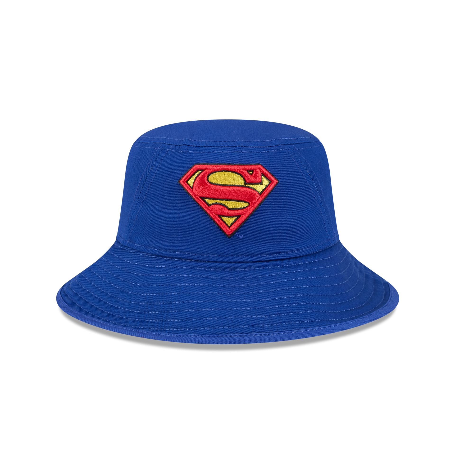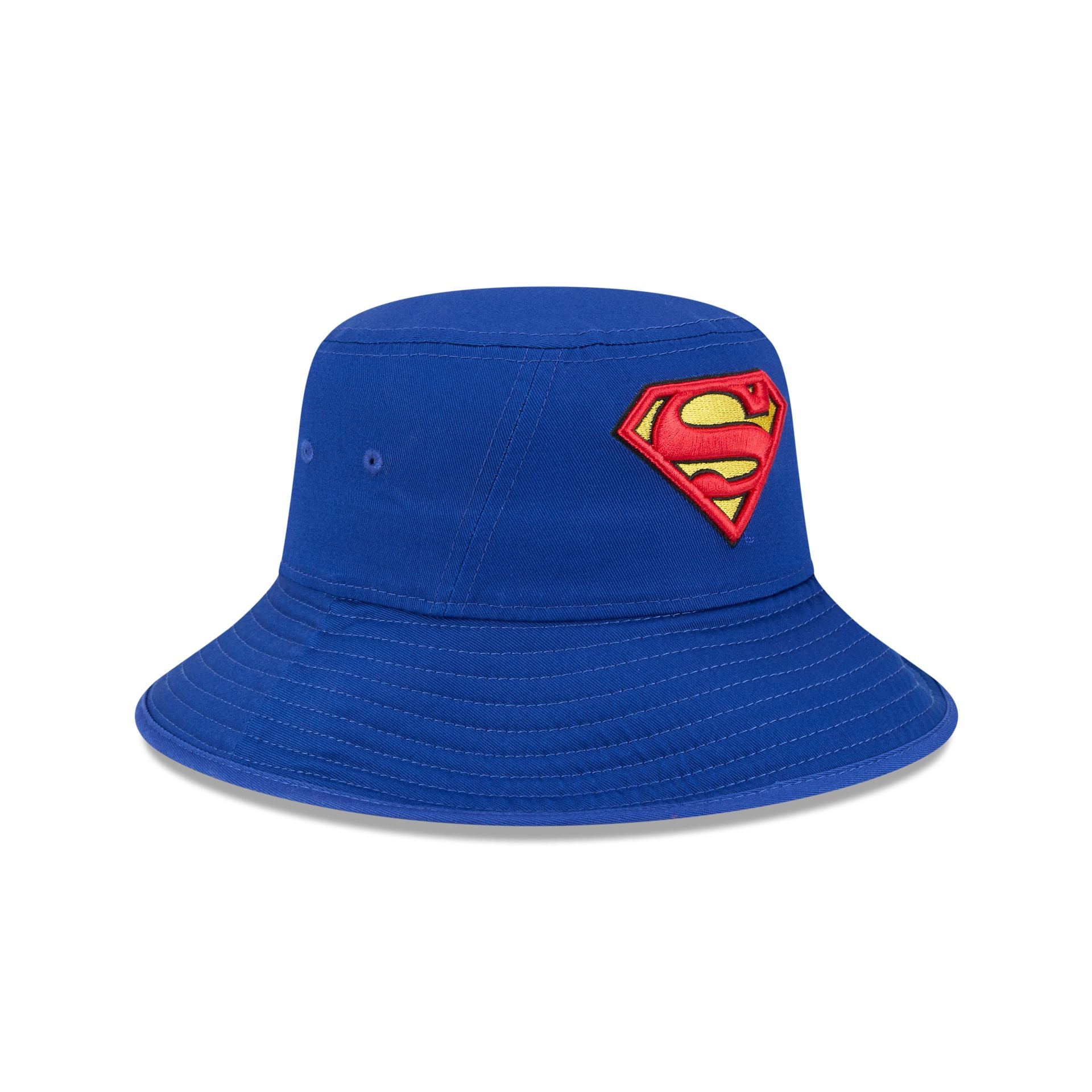 The Superman Team Color Bucket Hat features an embroidered Superman logo at the front with a New Era Flag at the left-wear side.