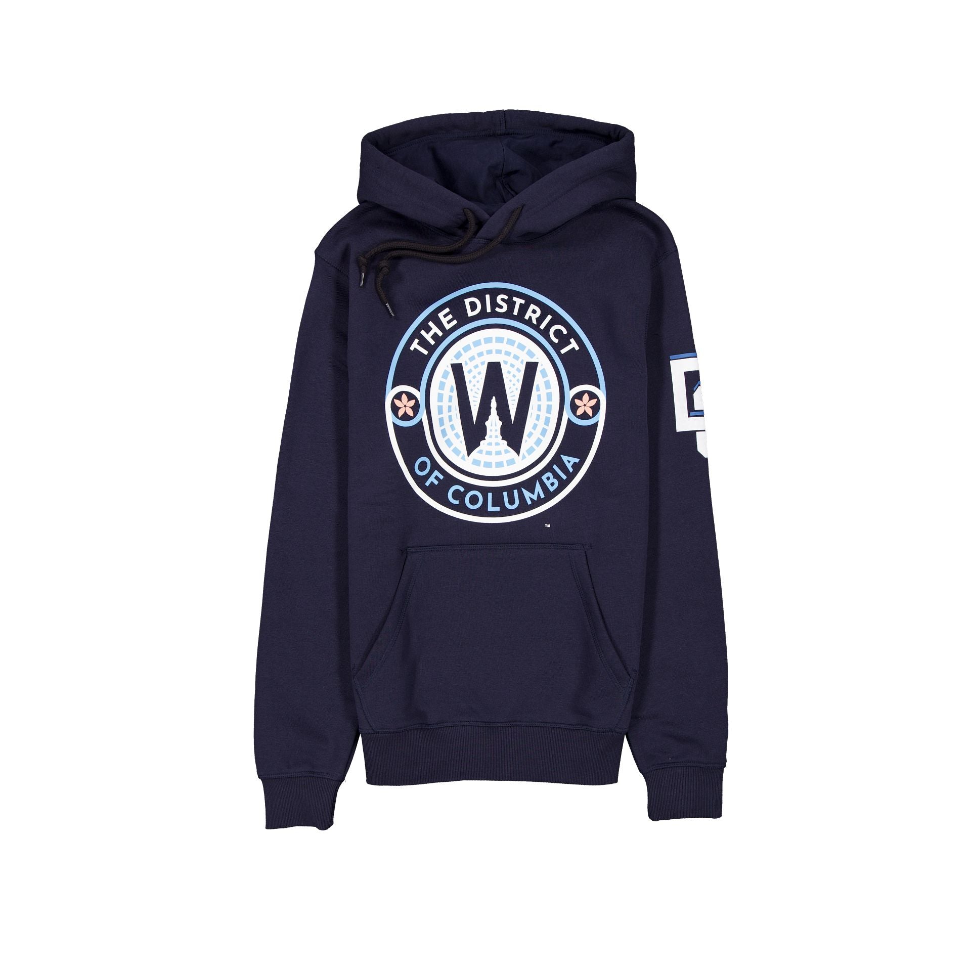 The Washington Nationals City Connect Navy Hoodie features a screen-printed Nationals logo at the front with an alternate team logo at the left-wear sleeve.