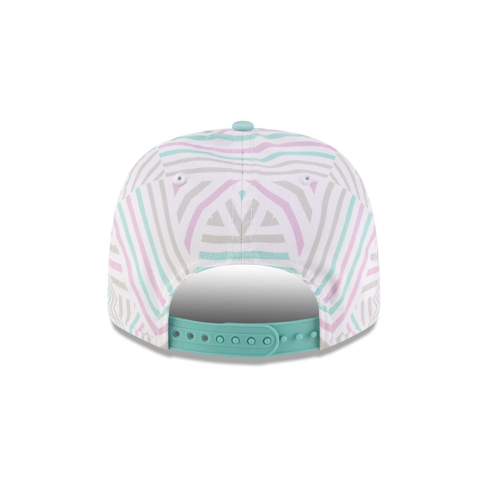 The 2025 Miami Race Special MoneyGram Haas F1 Team Oliver Bearman 9SEVENTY Stretch-Snap features an embroidered logo at the front left panels with the driver’s number at the visor. Additional details include a Haas Miami patch at the right-wear side. snapback closure at a patterned rear. and a mint blue undervisor.