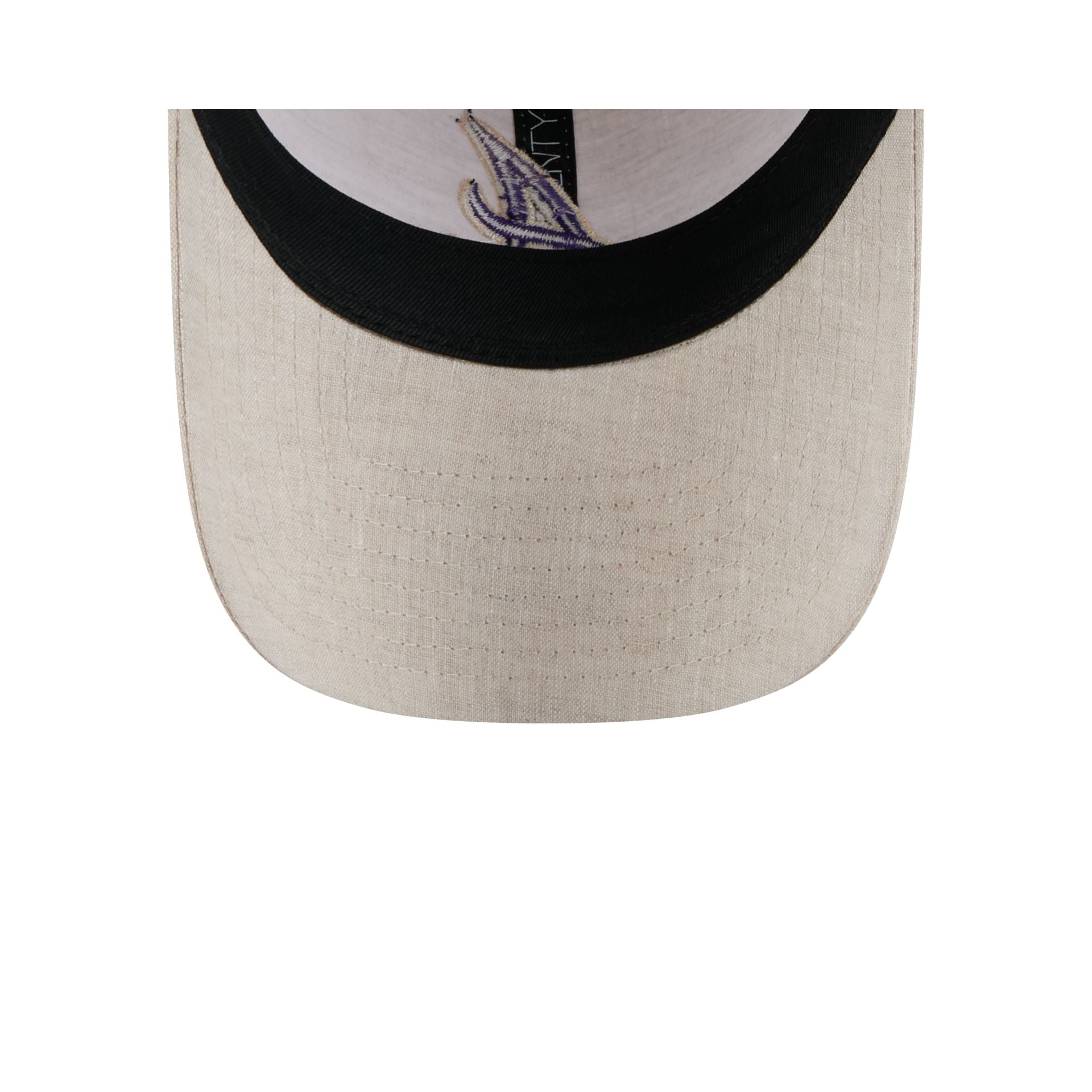 The Atlanta Braves Floral Women’s 9TWENTY Adjustable Cap features an embroidered Braves purple gradient logo at the front panels with mimosa flower details at the visor and an adjustable D-Ring closure at the rear.