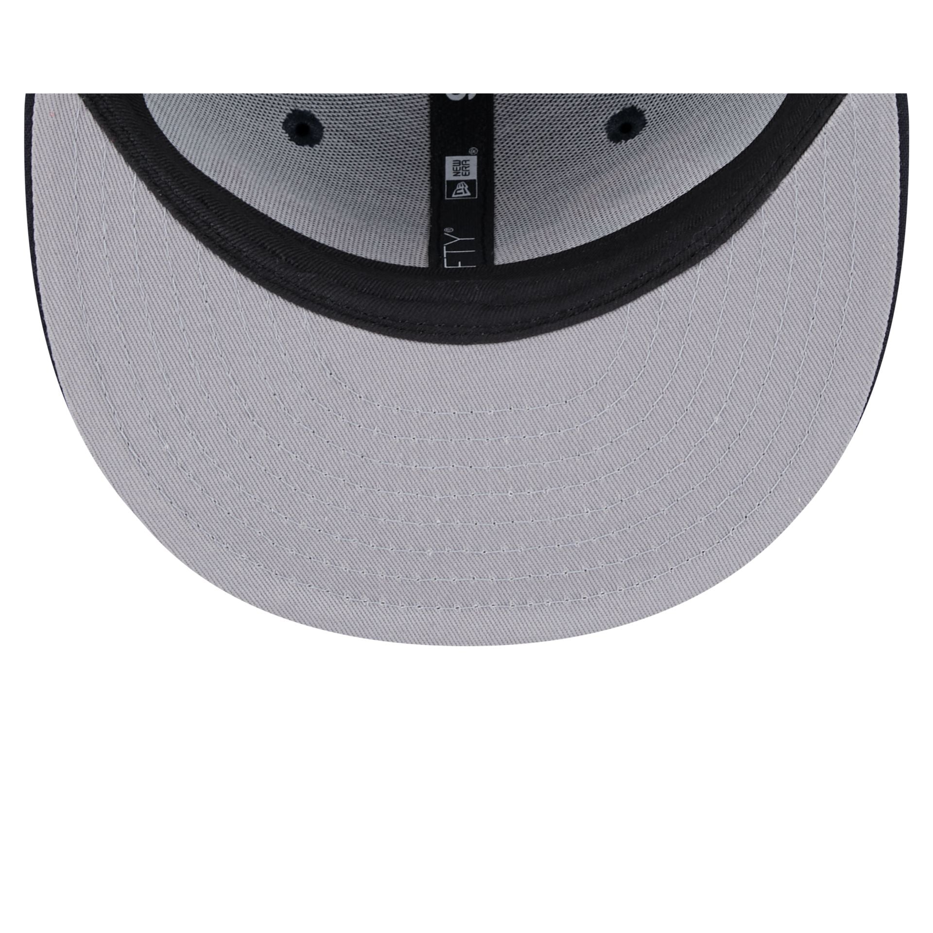 The Atlanta Braves Kids 9FIFTY Snapback Hat features an embroidered Braves wordmark at the front panels with a matching team logo at the right-wear side. Additional details include a gray undervisor and a snapback closure at the rear.
