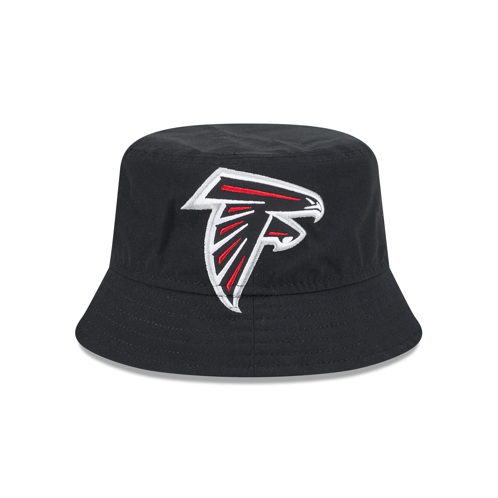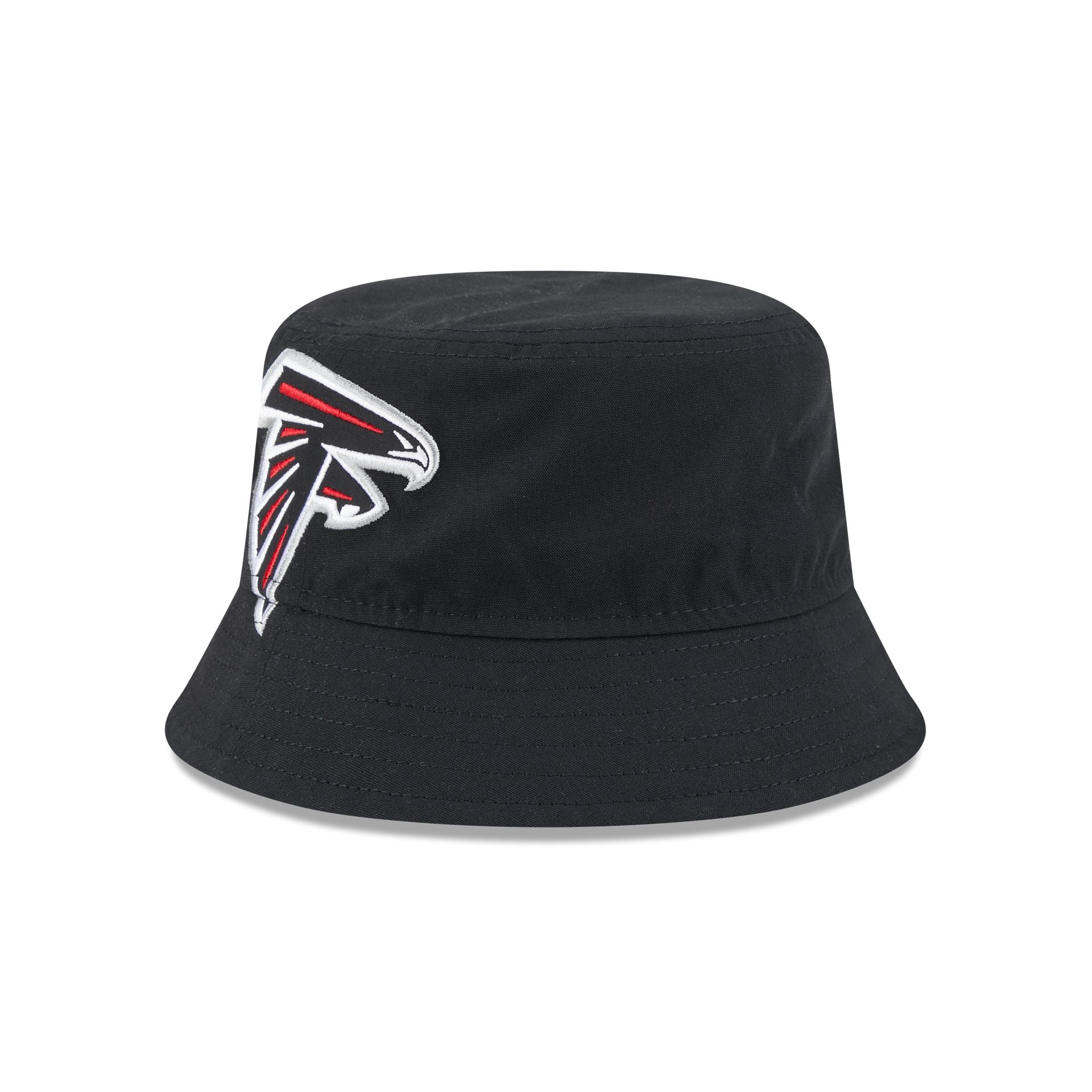 The Atlanta Falcons Kids Helmet Bucket Hat features an embroidered team helmet design throughout the hat with a team tag at the rear.