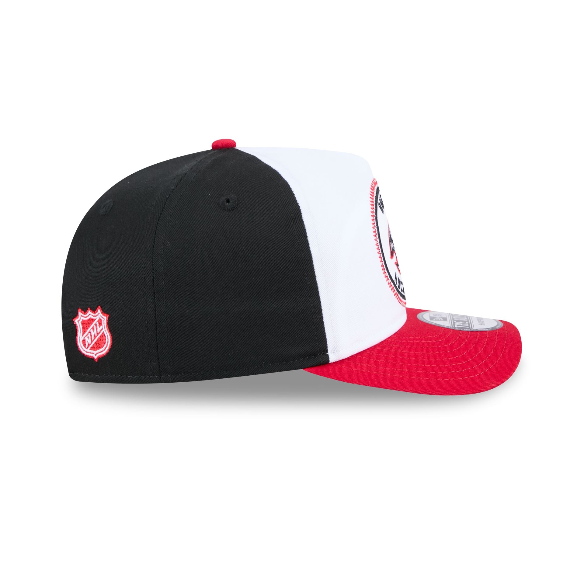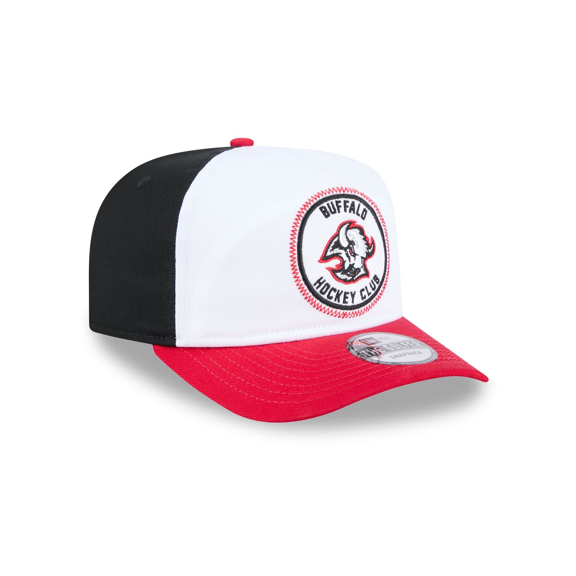 The Buffalo Sabres NHL Pack Golfer features a Sabres Hockey Club patch at the front panel with a matching NHL Shield at the right of a snapback closure at the rear and a gray undervisor.