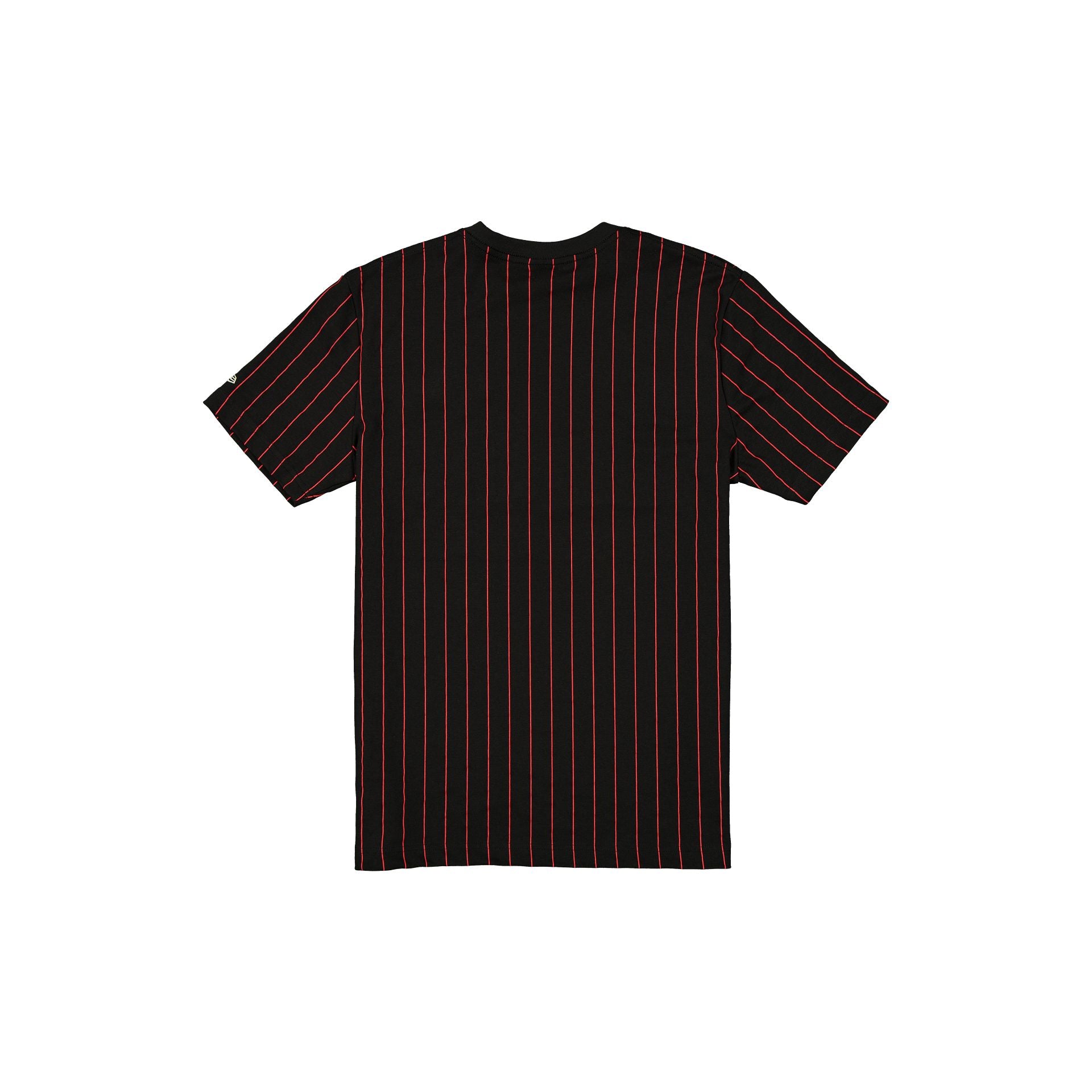 The Chicago Blackhawks Throwback Retro Pinstripe T-Shirt features an embroidered Blackhawks wordmark at the front with a twill applique logo at the left chest.