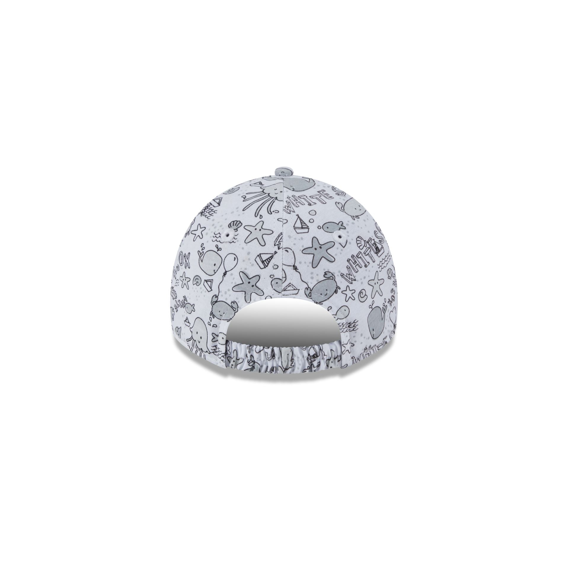 The Chicago White Sox Kids Ocean 9TWENTY Adjustable Cap features an embroidered White Sox logo at the front panels with a nautical design throughout the cap. Additional details include a stretch strap closure at the rear and a gray undervisor.