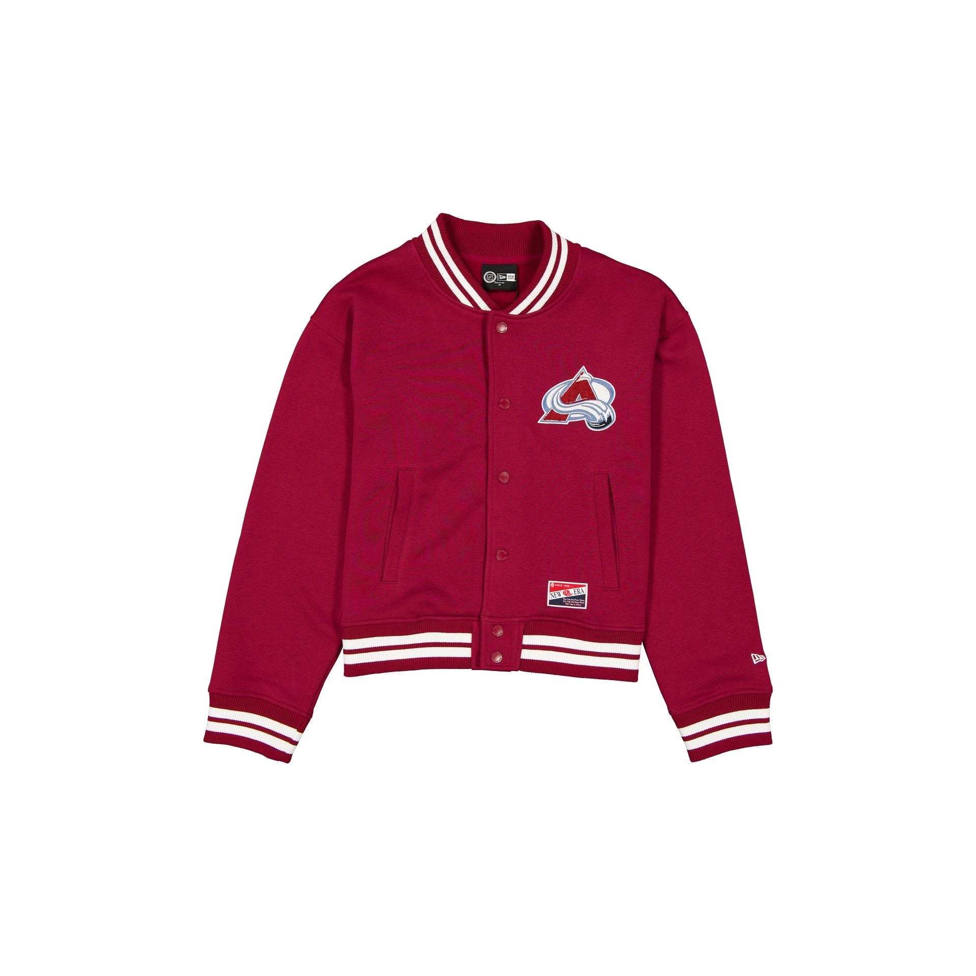 The Colorado Avalanche Throwback Women’s Snap Front Jacket features a chenille Avalanche logo at the left chest a snap button closure and front pockets.