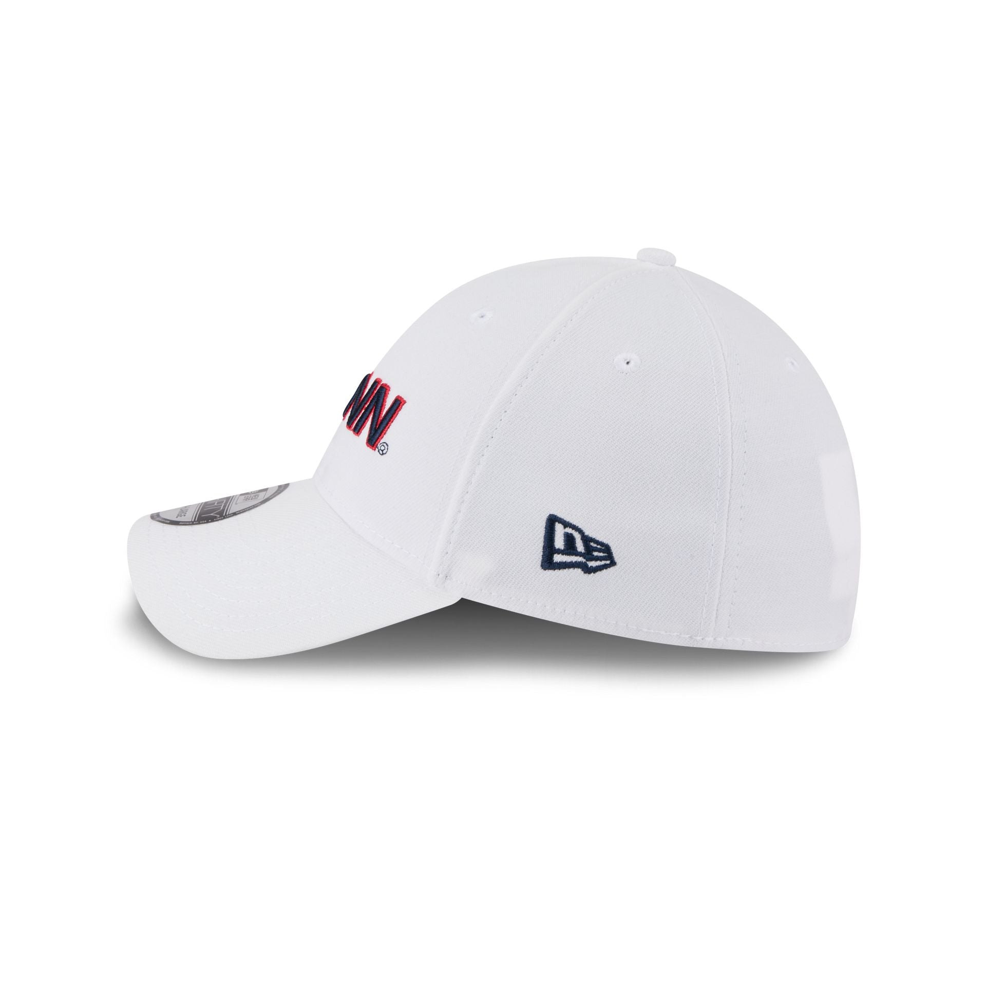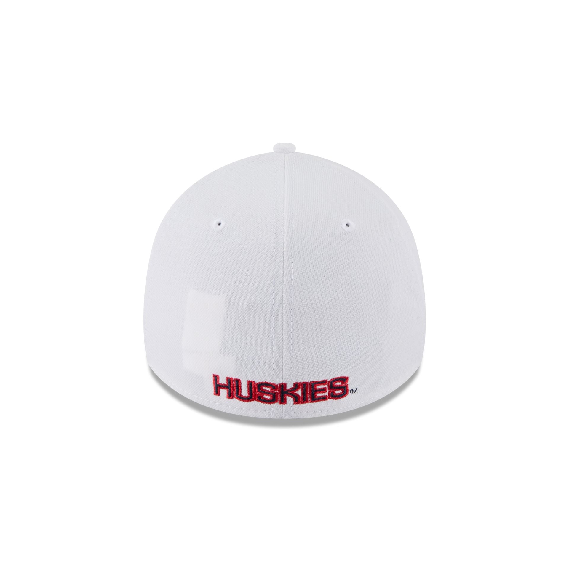 The Connecticut Huskies Optic White 39THIRTY Stretch Fit features an embroidered Huskies logo at the front panels with a team wordmark at the rear.