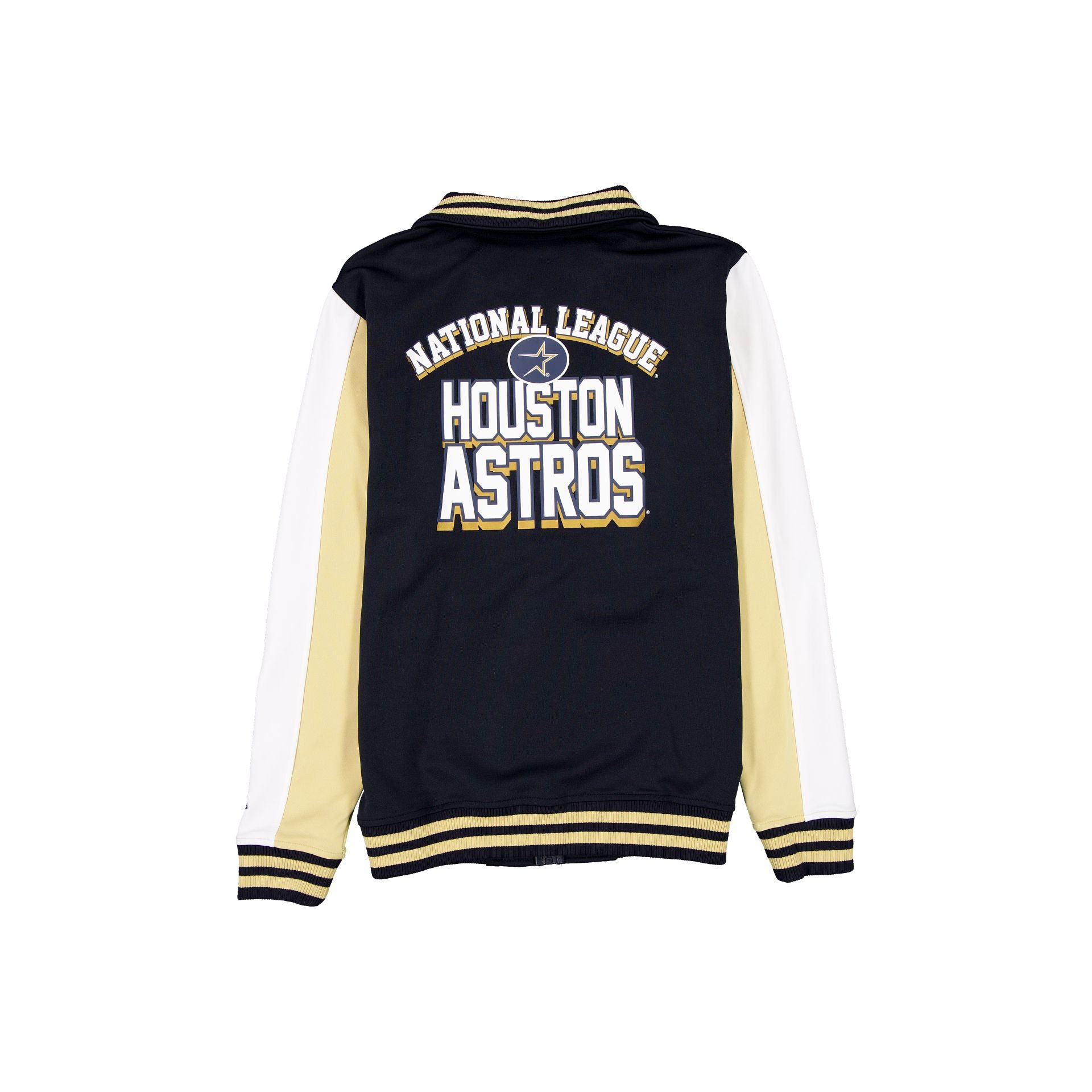 The Houston Astros Game Day Jacket features an embroidered Astros Cooperstown logo at the left chest and graphic at the back. Additional details include pockets and a zipper closure.