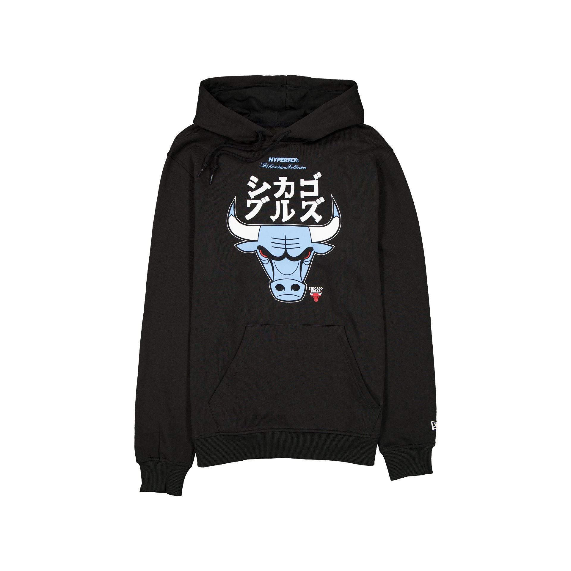 The Chicago Bulls 2025 All-Star Game Hoodie features a screen-printed Katakana-themed Bulls graphic at the front.
