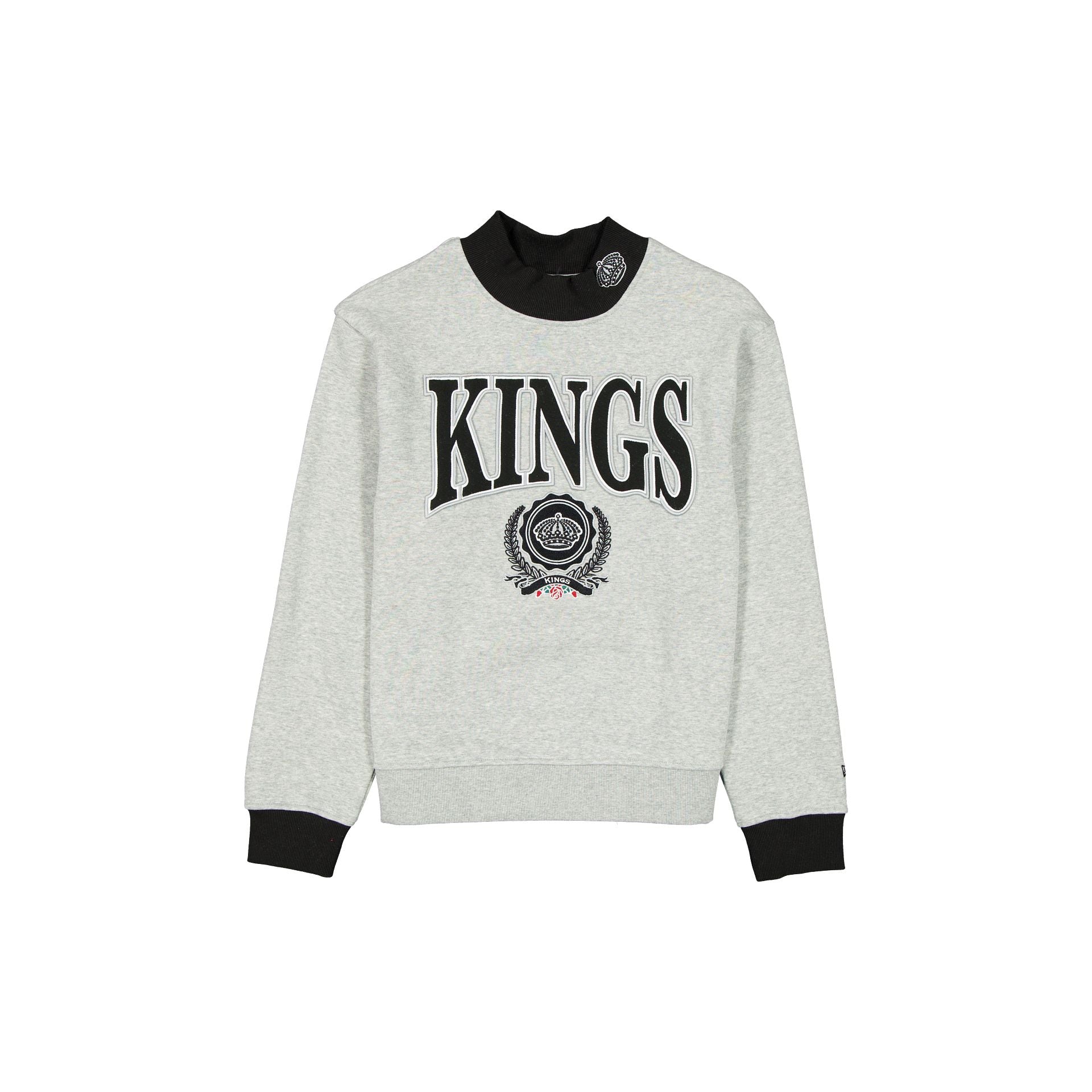 The Los Angeles Kings Throwback Prep Women’s Mockneck Sweatshirt features an embroidered Kings wordmark above a team emblem at the front with a matching logo at the neckline.