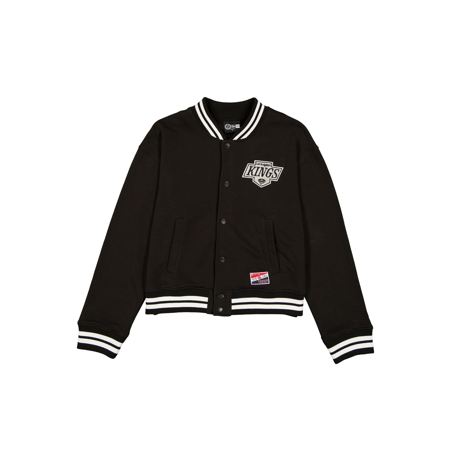 The Los Angeles Kings Throwback Women’s Snap Front Jacket features a chenille Kings logo at the left chest a snap button closure and front pockets.