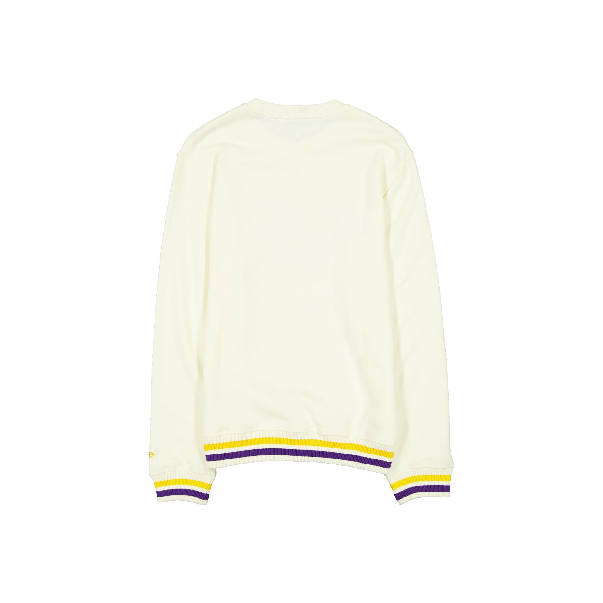 The Los Angeles Lakers Throwback Chrome White Crewneck features a twill applique Lakers logo and an embroidered wordmark at the front with a New Era jock tag at the left hip.