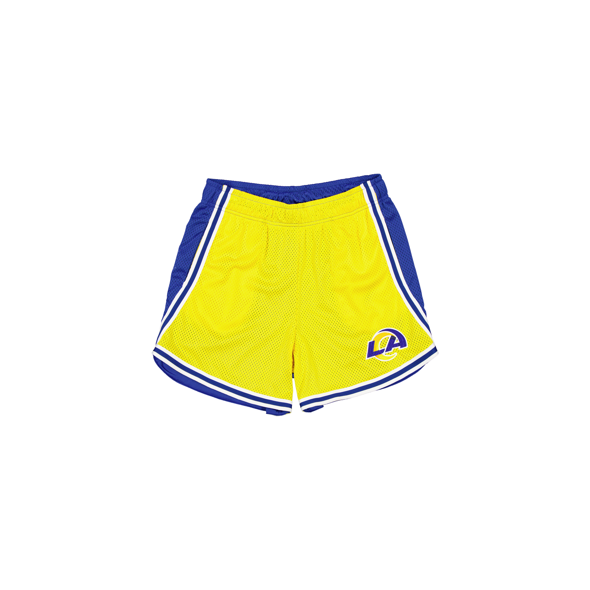 The Los Angeles Rams Sport Classics Women’s Shorts feature an embroidered Rams logo at the left leg with pockets and adjustable drawstrings.