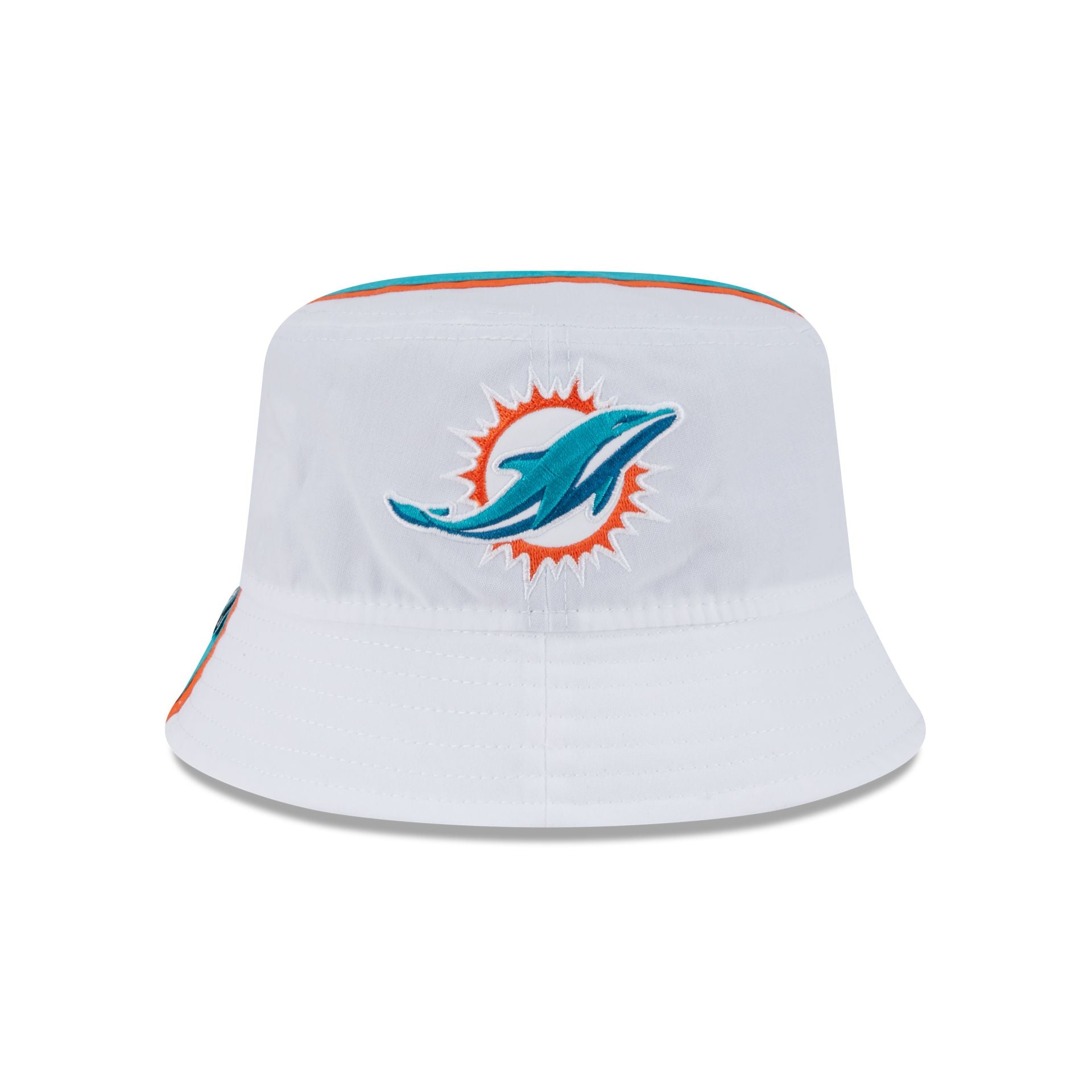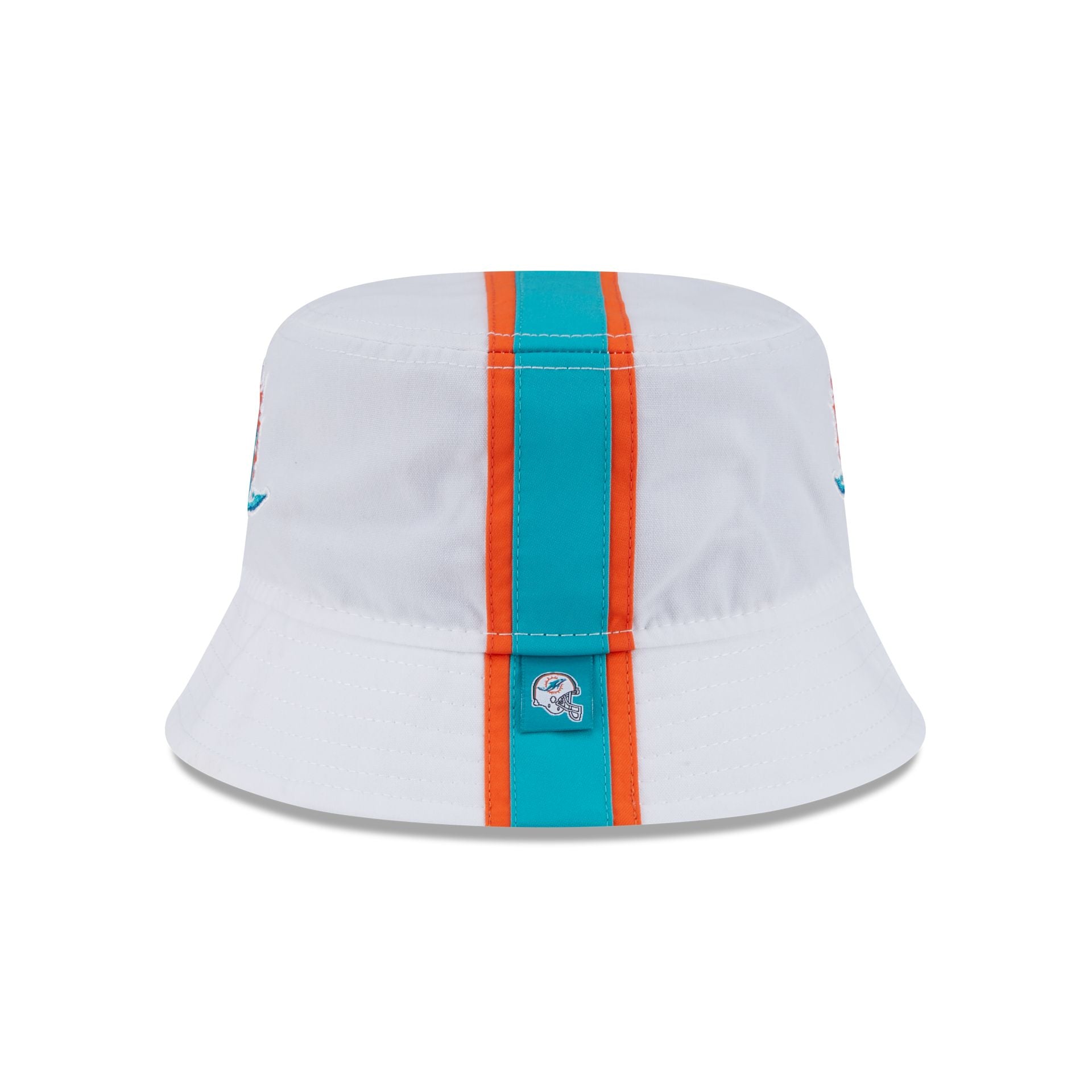 The Miami Dolphins Kids Helmet Bucket Hat features an embroidered team helmet design throughout the hat with a team tag at the rear.