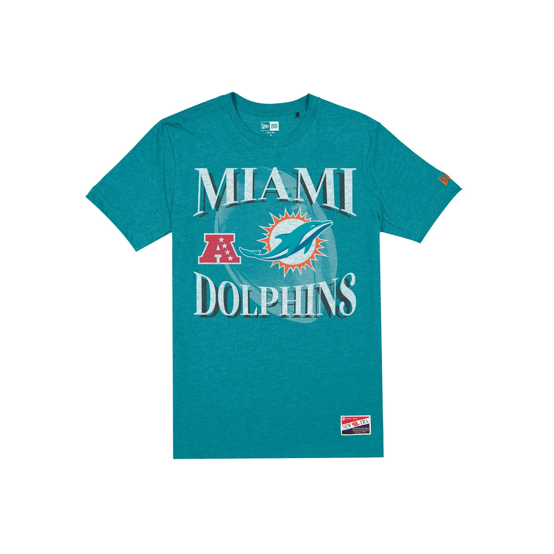 The Miami Dolphins Throwback Statement T-Shirt features a screen-printed Dolphins graphic at the front.