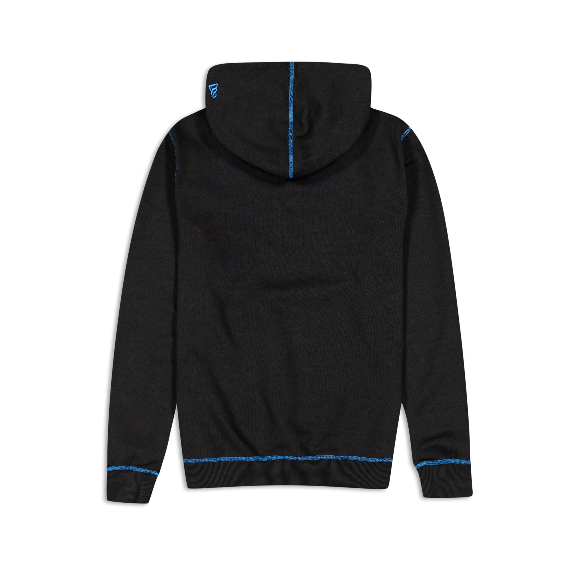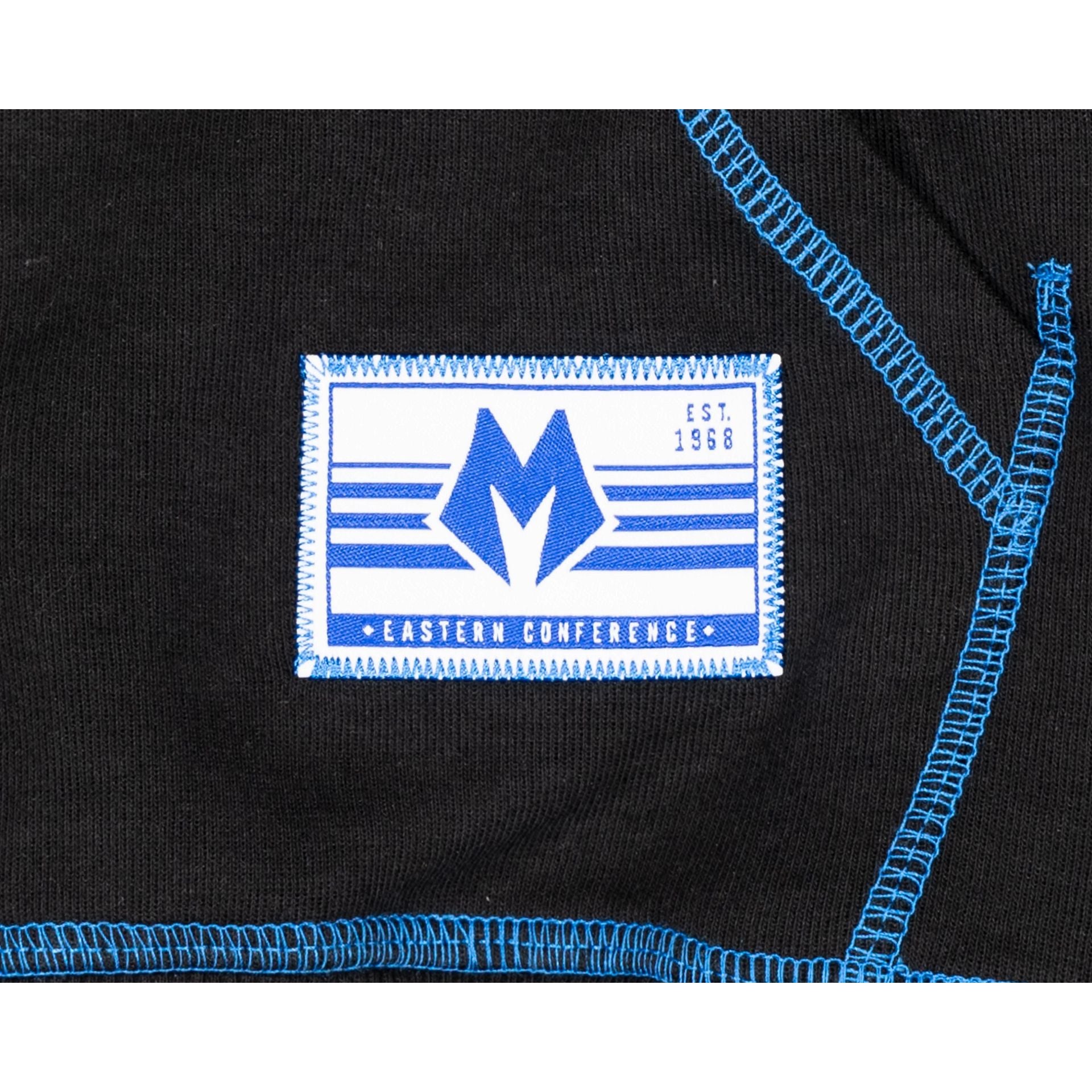 The Milwaukee Bucks 2023 City Edition Black Hoodie features a mesh applique Bucks wordmark and embroidered team logo at the chest with a team jock tag at the kangaroo pocket.