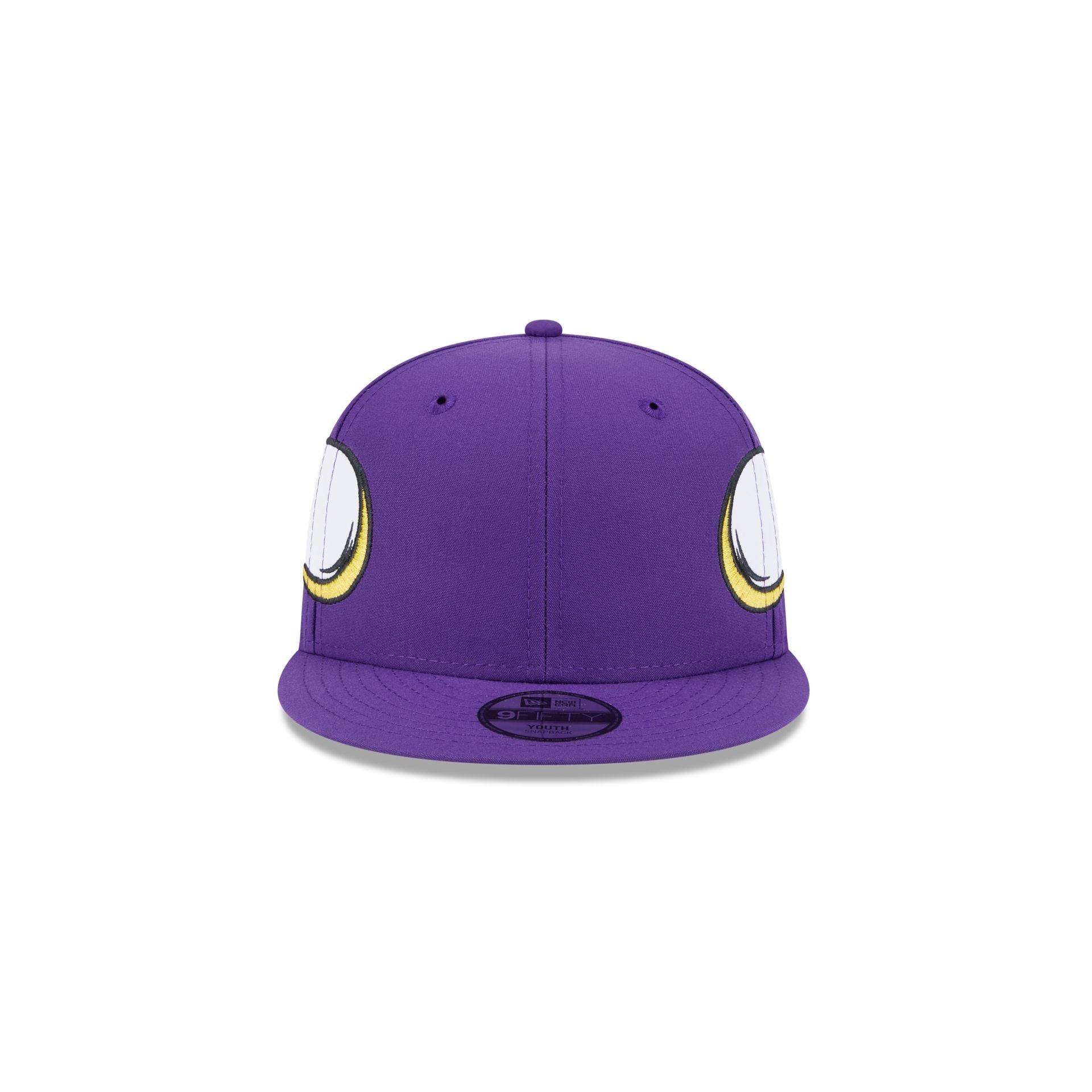 The Minnesota Vikings Kids Helmet 9FIFTY Snapback features an embroidered Vikings helmet design throughout the hat with a team tag on a snapback closure at the rear.